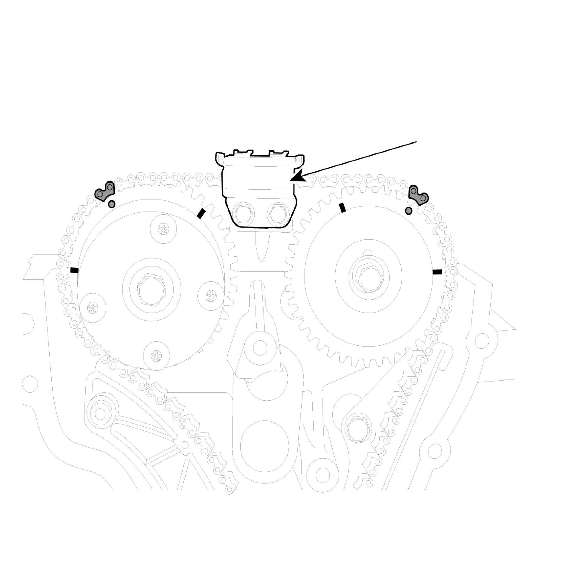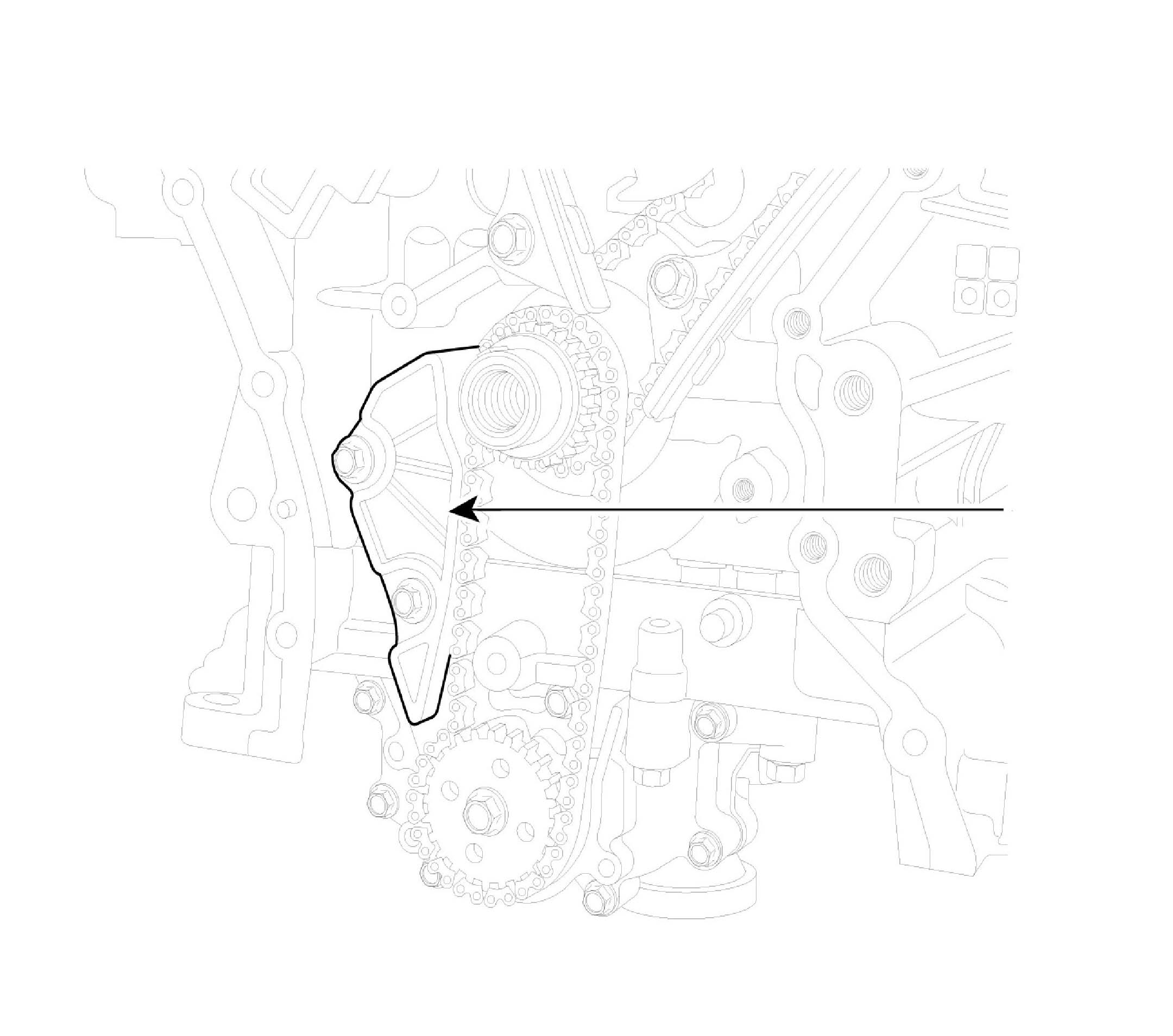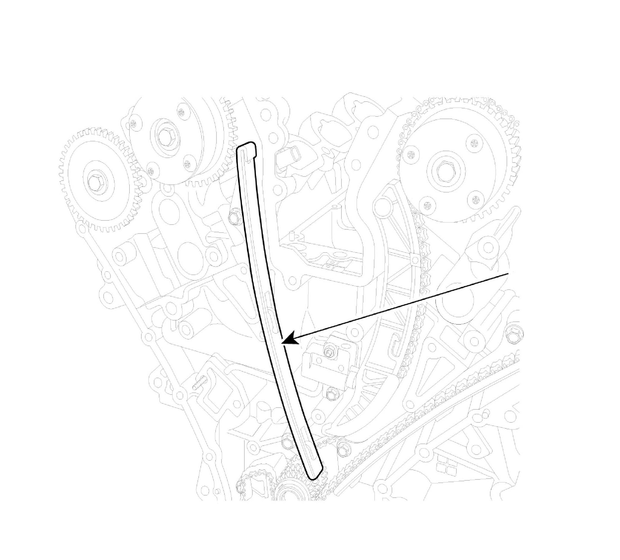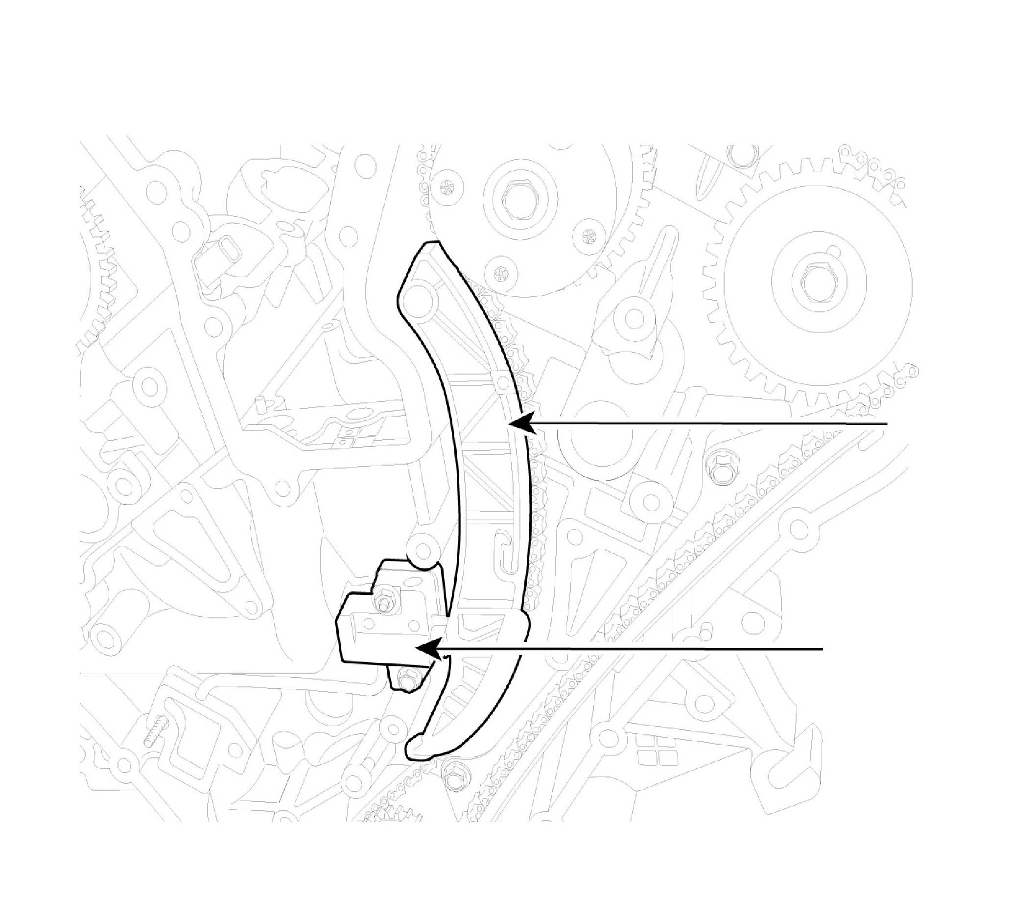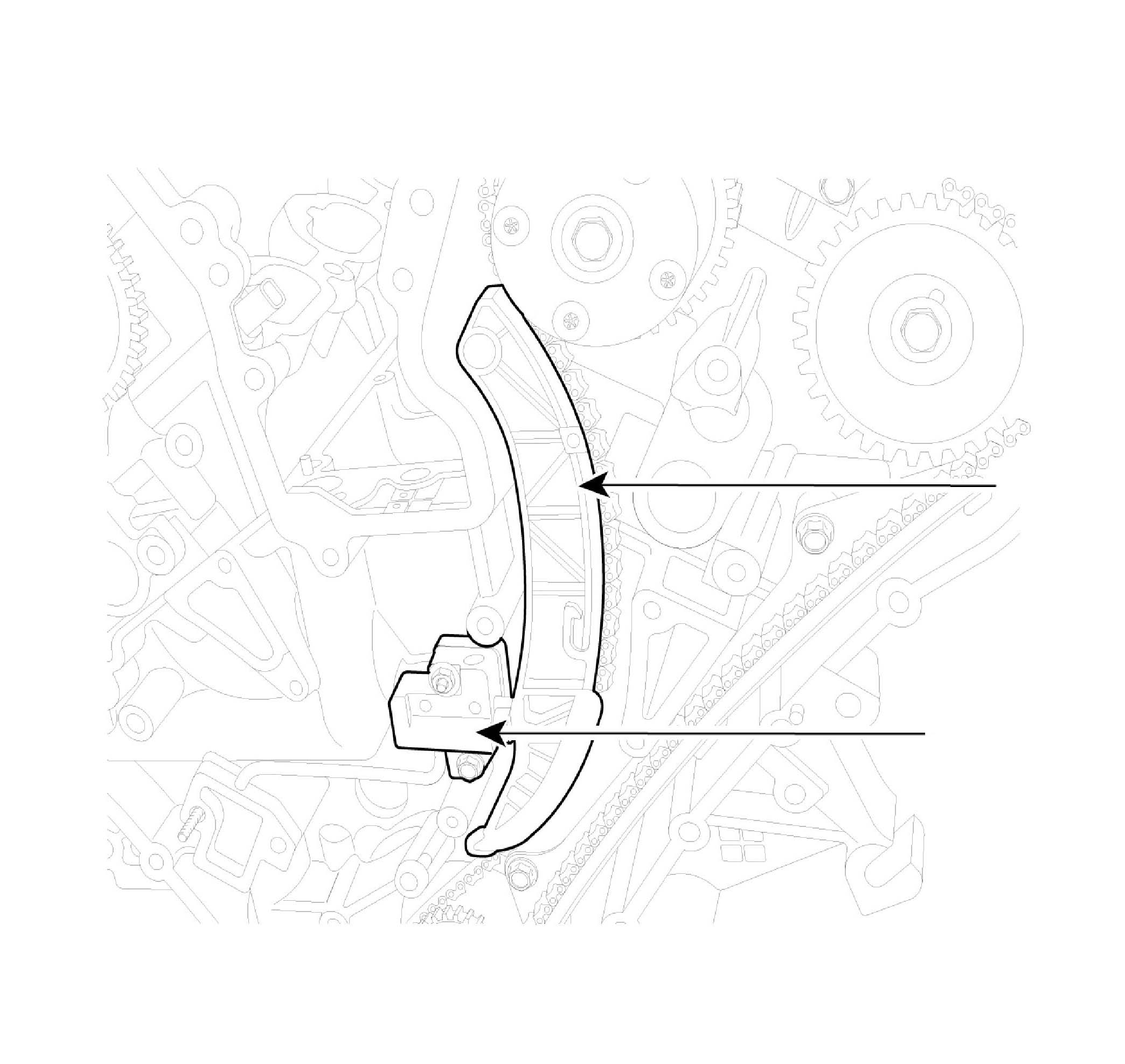 2. Inspect the tensioner arm and chain guide for abnormal wear, cracks, or damage. Replace as necessary.