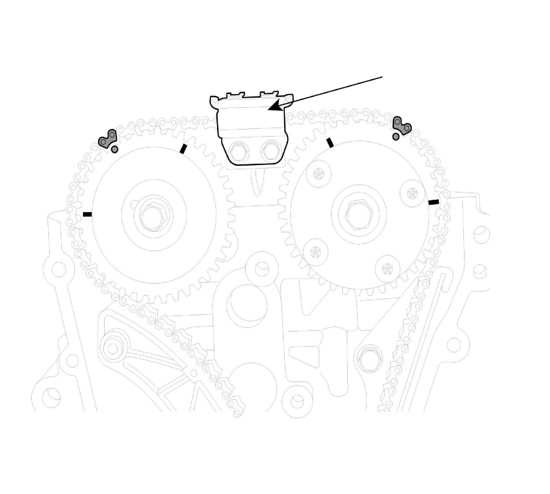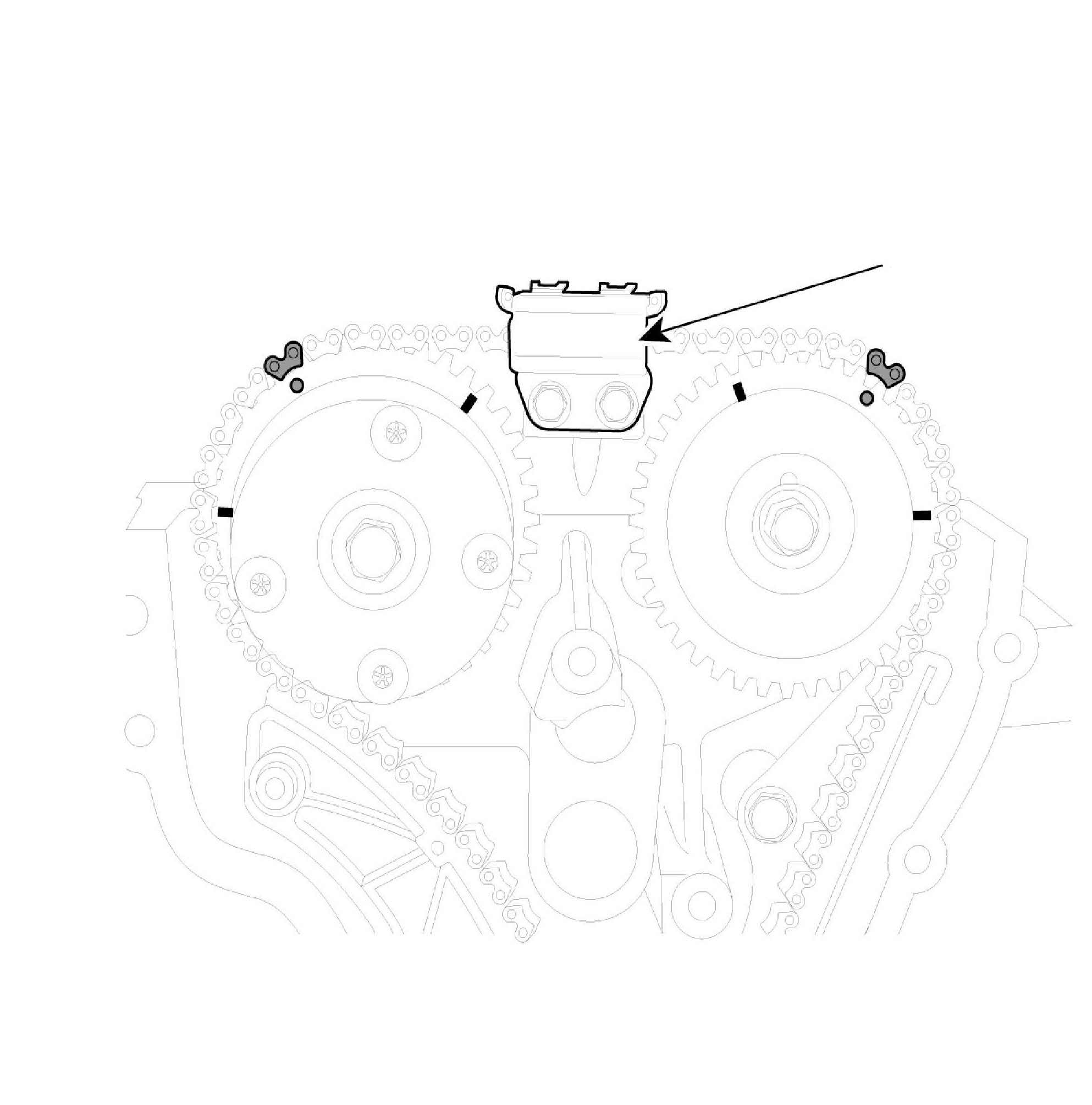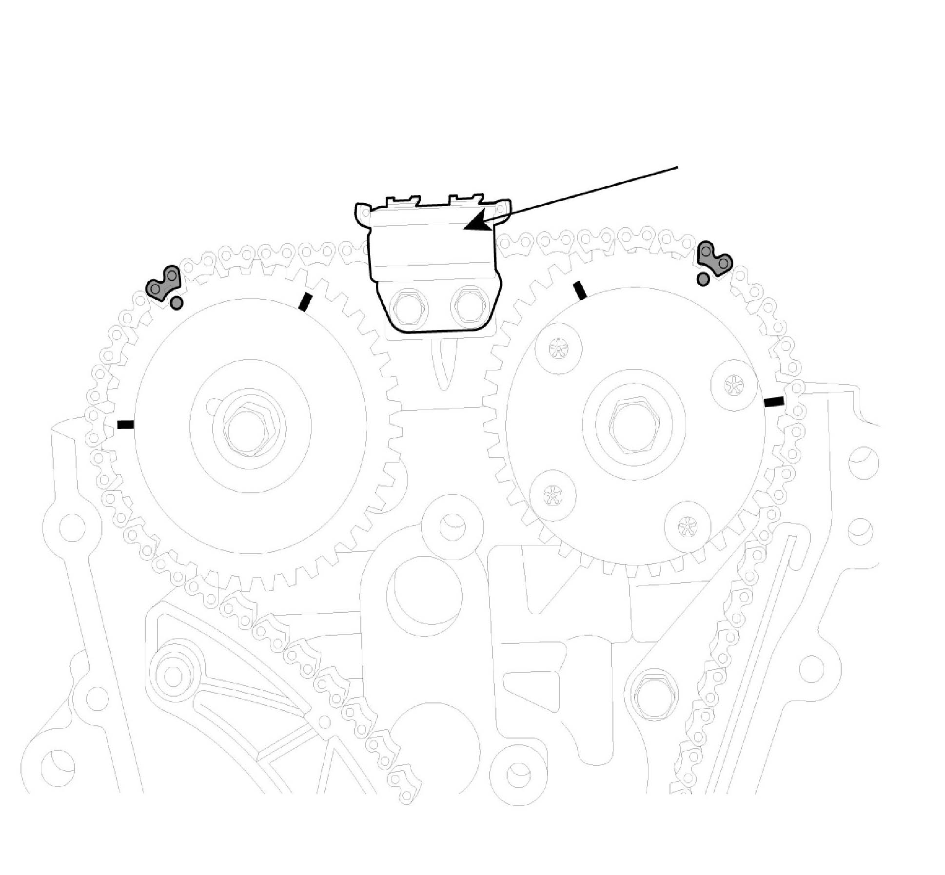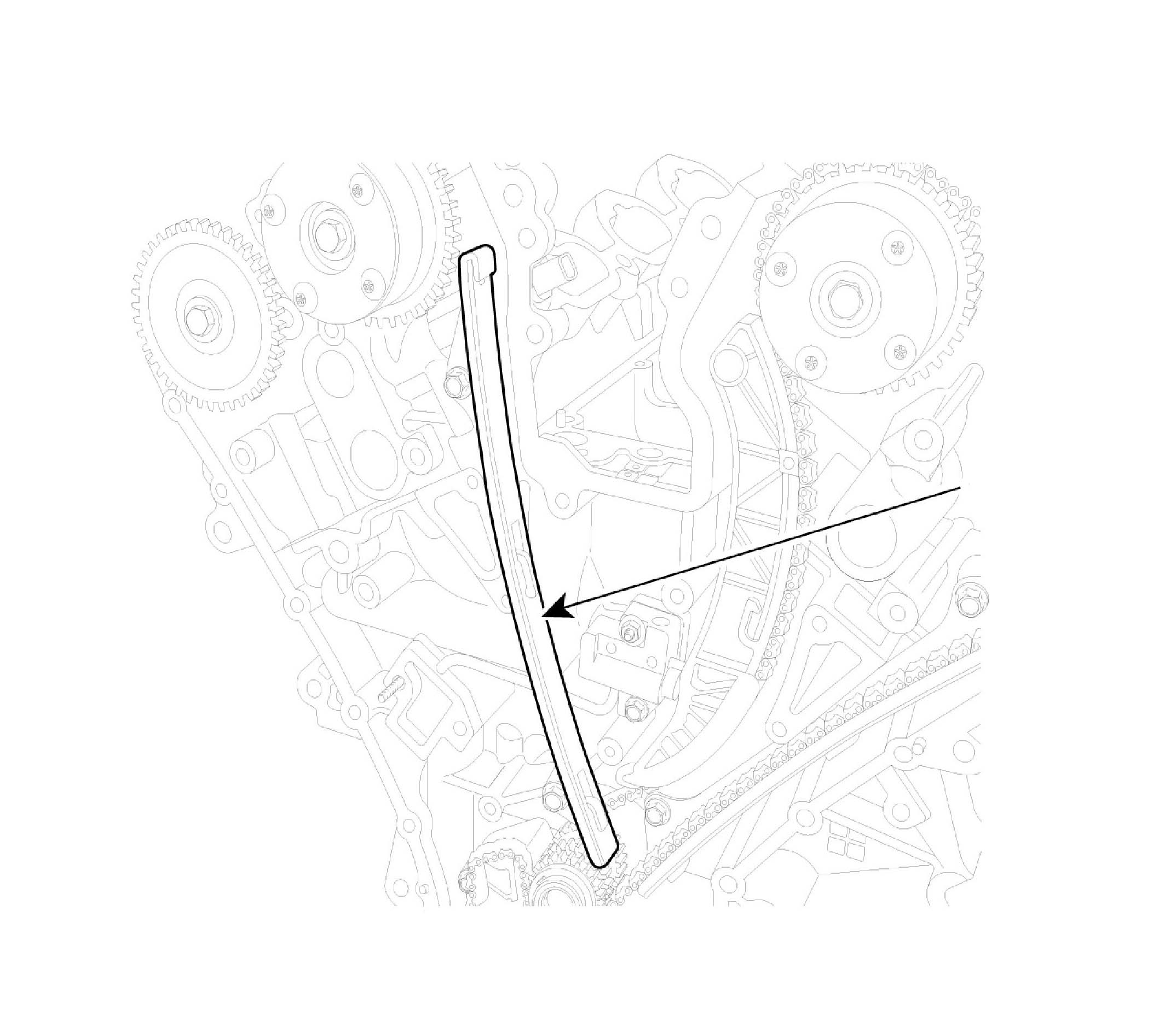 2. Inspect the tensioner arm and chain guide for abnormal wear, cracks, or damage. Replace as necessary.