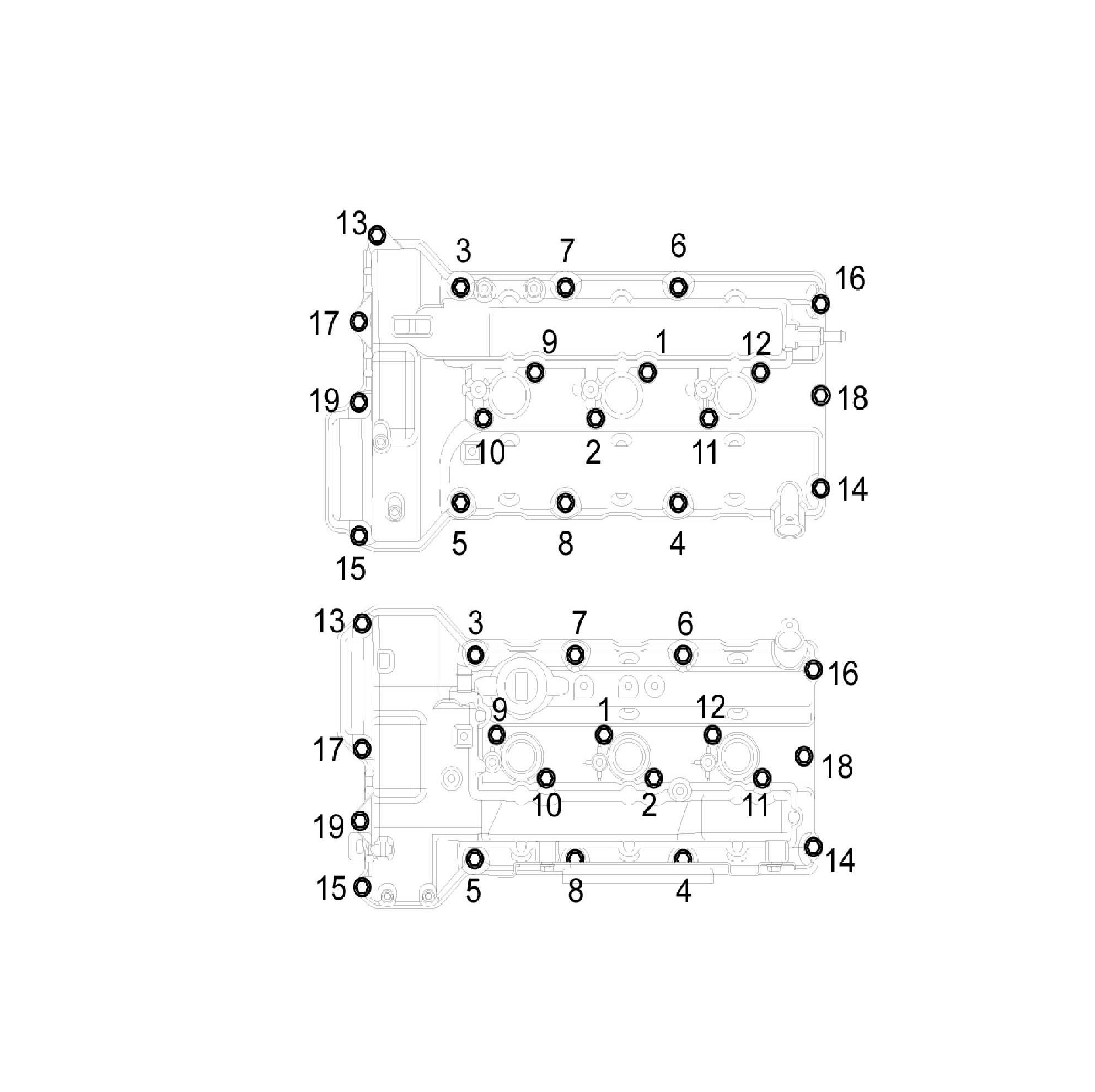 ^ Install the cylinder head cover bolts as following method.