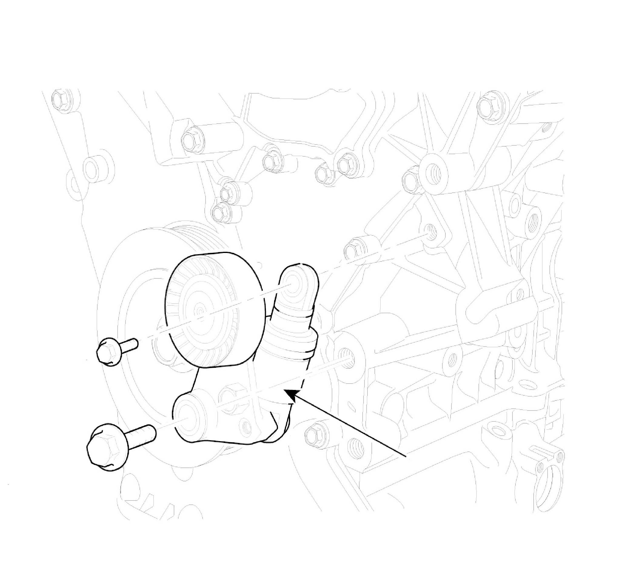 5. Remove drive belt idler (A).