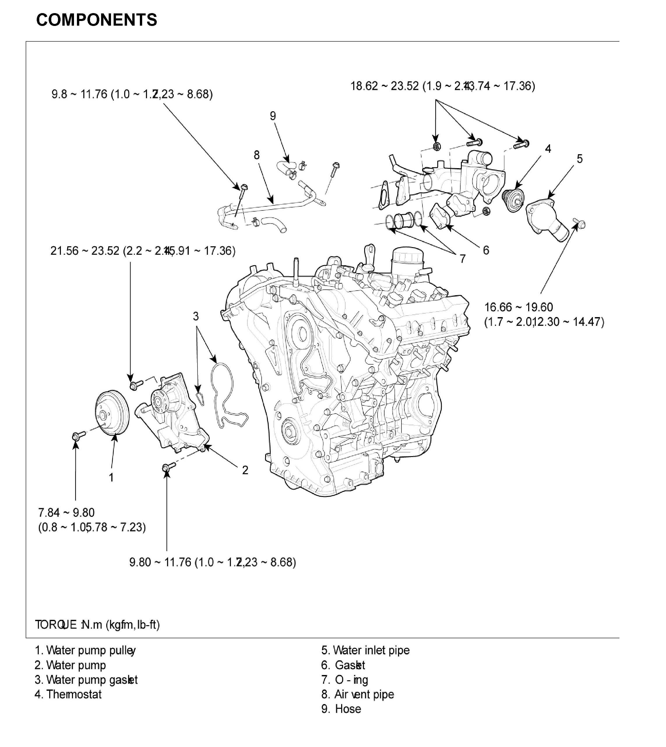 Bolt 21.56 - 23.52 Nm (2.2 2.4 kgf.m, 15.91 - 17.36 1b-ft)