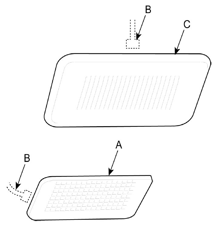 Using a screwdriver, and remove the vanity lamp (A) and hands free mic (C).