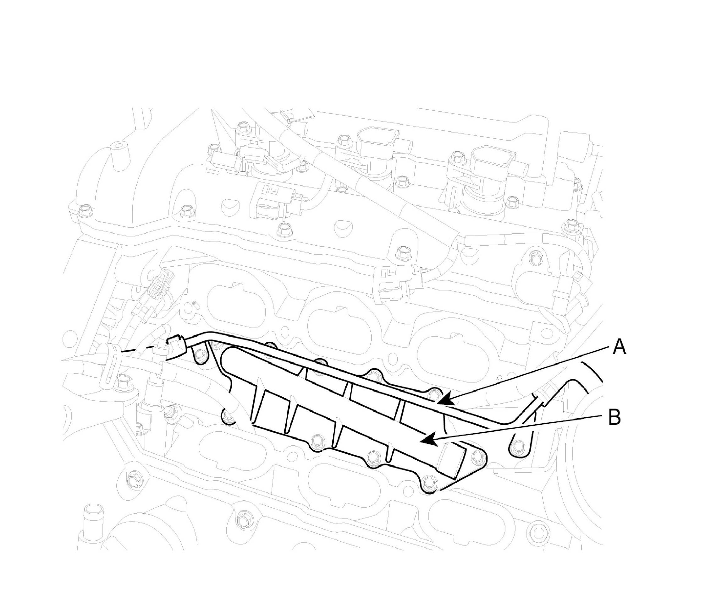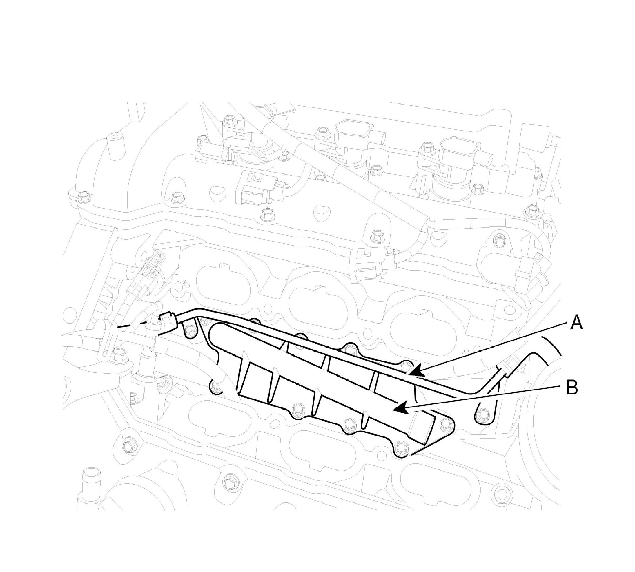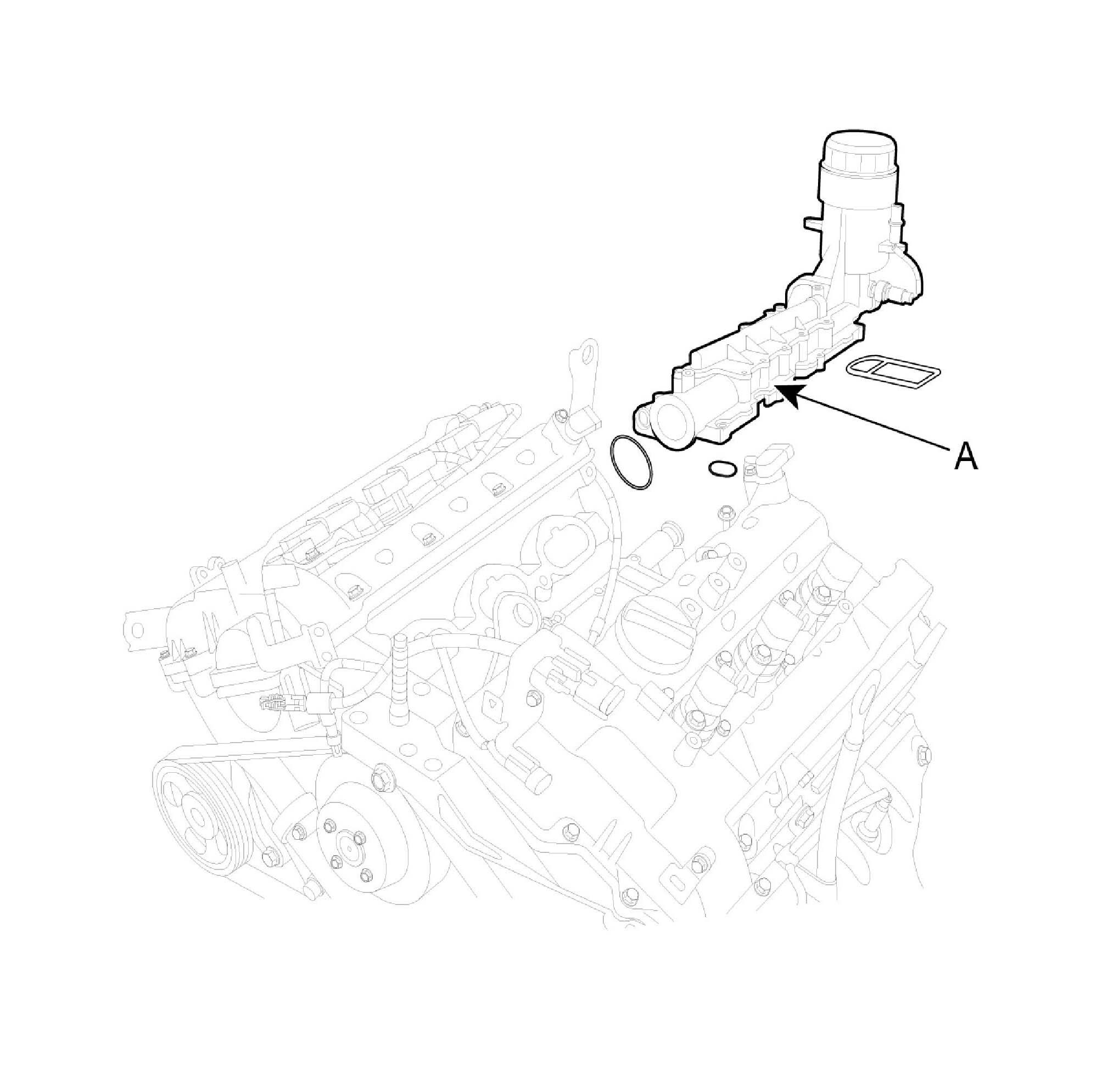 2. Install oil filter body cover (B) and new gasket on the oil filter body.