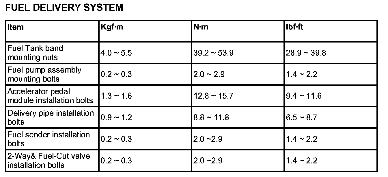 Tightening Torques - Fuel Delivery System: