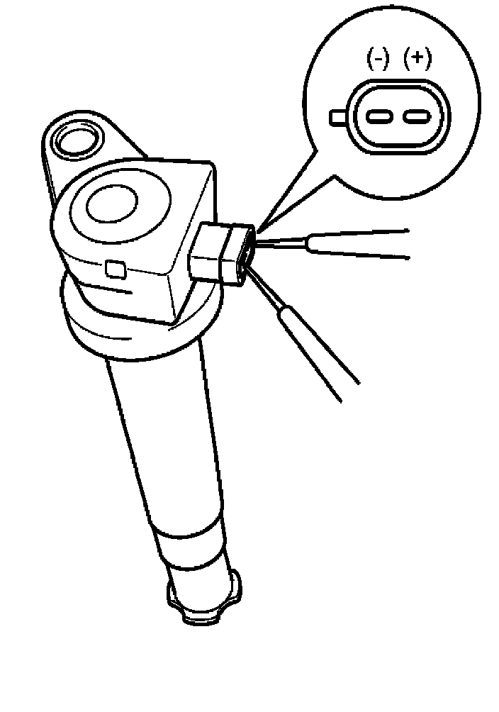 Measure the primary coil resistance between terminals (+) and (-).