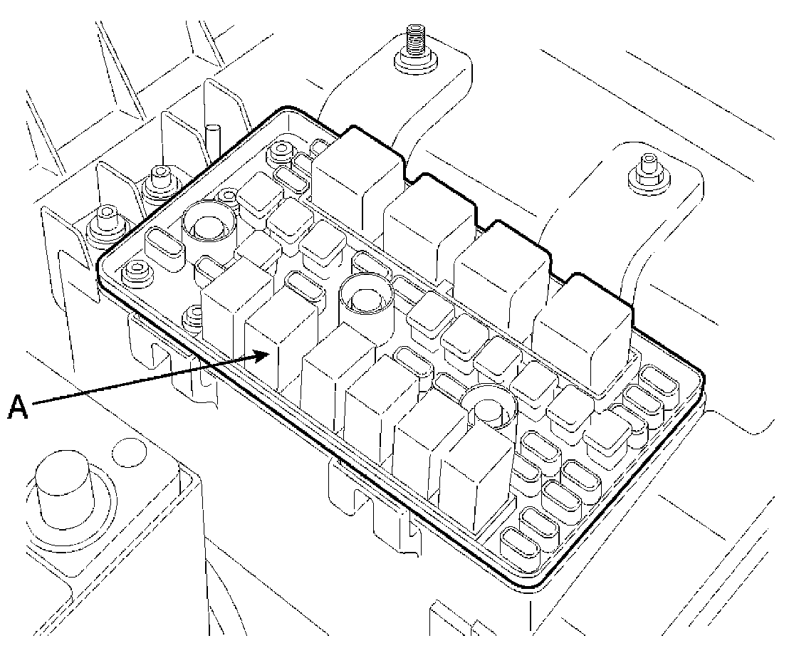NOTE: To prevent fuel being injected from injectors while the engine is being cranked, remove the fuel pump relay (A) from the fuse box. Crank the engine for no more than 5 - 10 seconds.