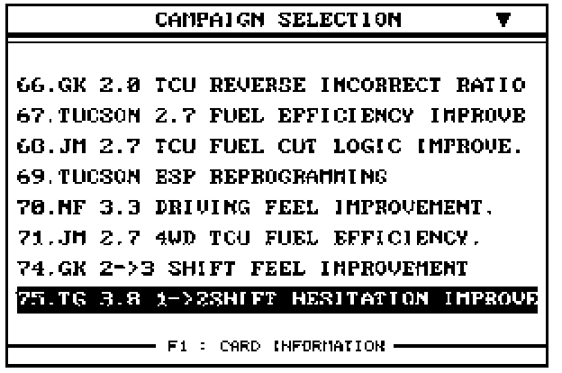 2. Select option "75. TG 3.8 1->2 SHIFT HESITATION IMPROVE" and press ENTER.