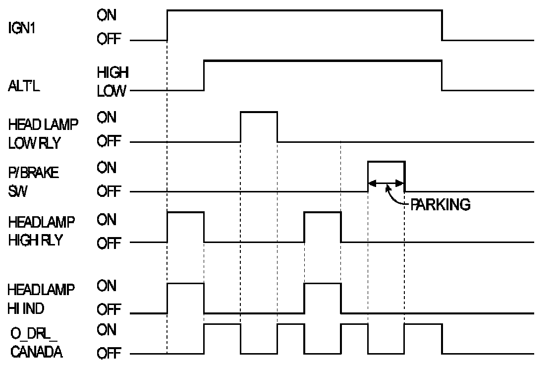 In addition in case of DRL for Europe the shunt between the Tail Lp Relay output and the interior lamp has to be removed, and the control of the interior lamp is managed by the BCM output DRL_RLY. In other cases the interior lamp is automatically turned on by HW activity on the Tail Lp Relay output. (North America option input line is connected to the ground electrical level) On contrary to EC specification, CANADA option uses HIGH BEAM as the HEAD LAMP. Release condition: