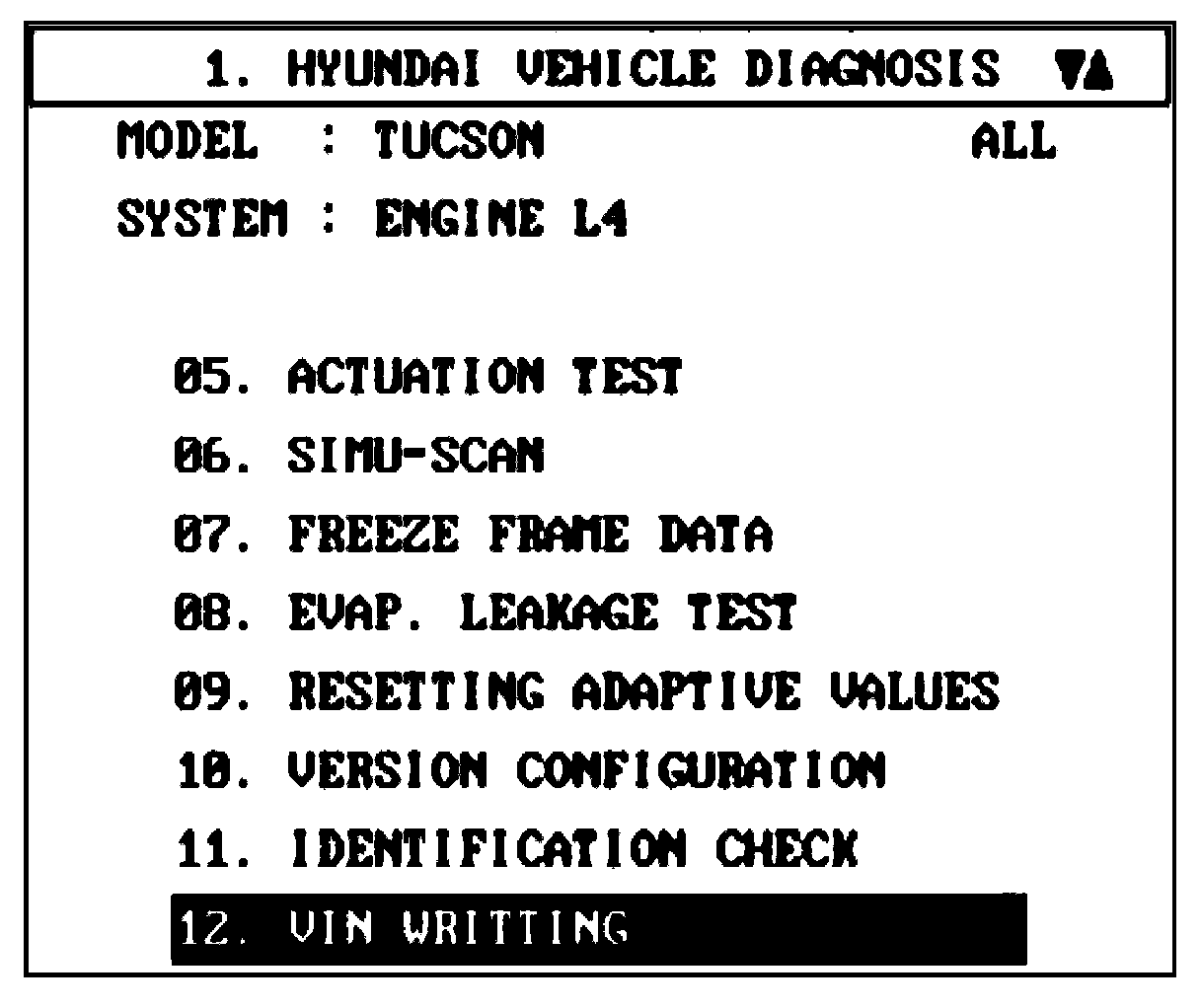 2. Select "VIN WRITING".