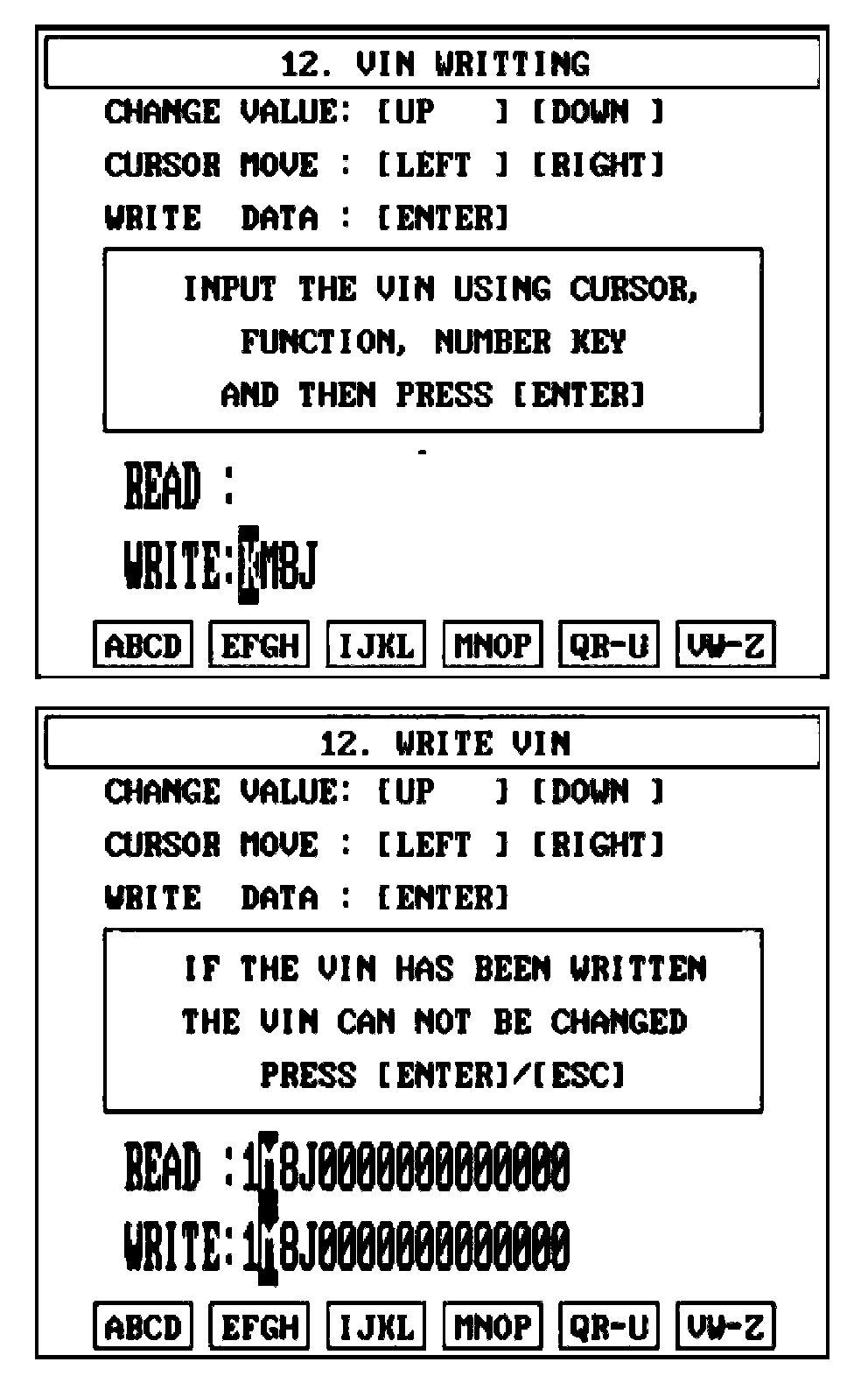 4. Write the VIN with cursor, function and number keys.