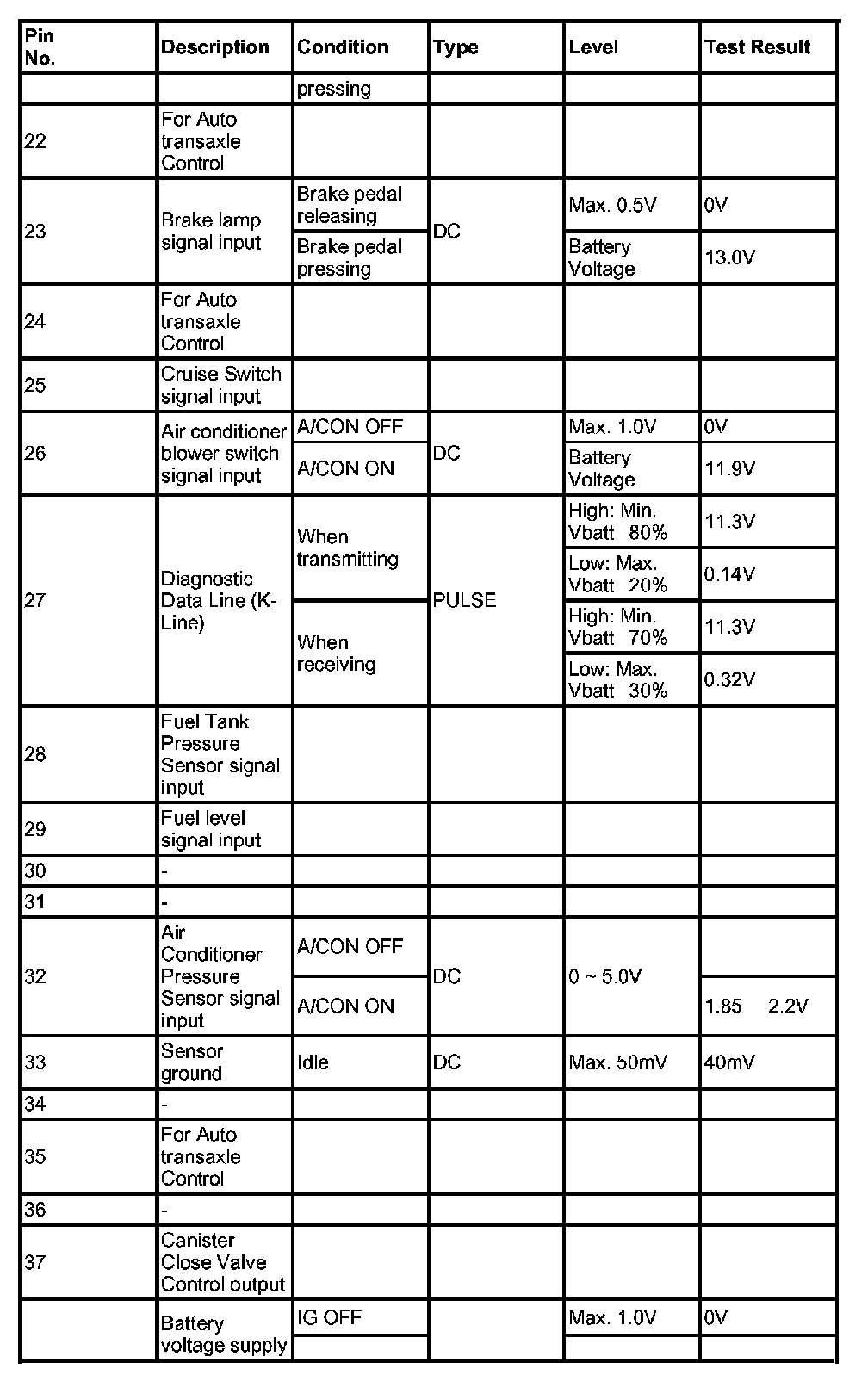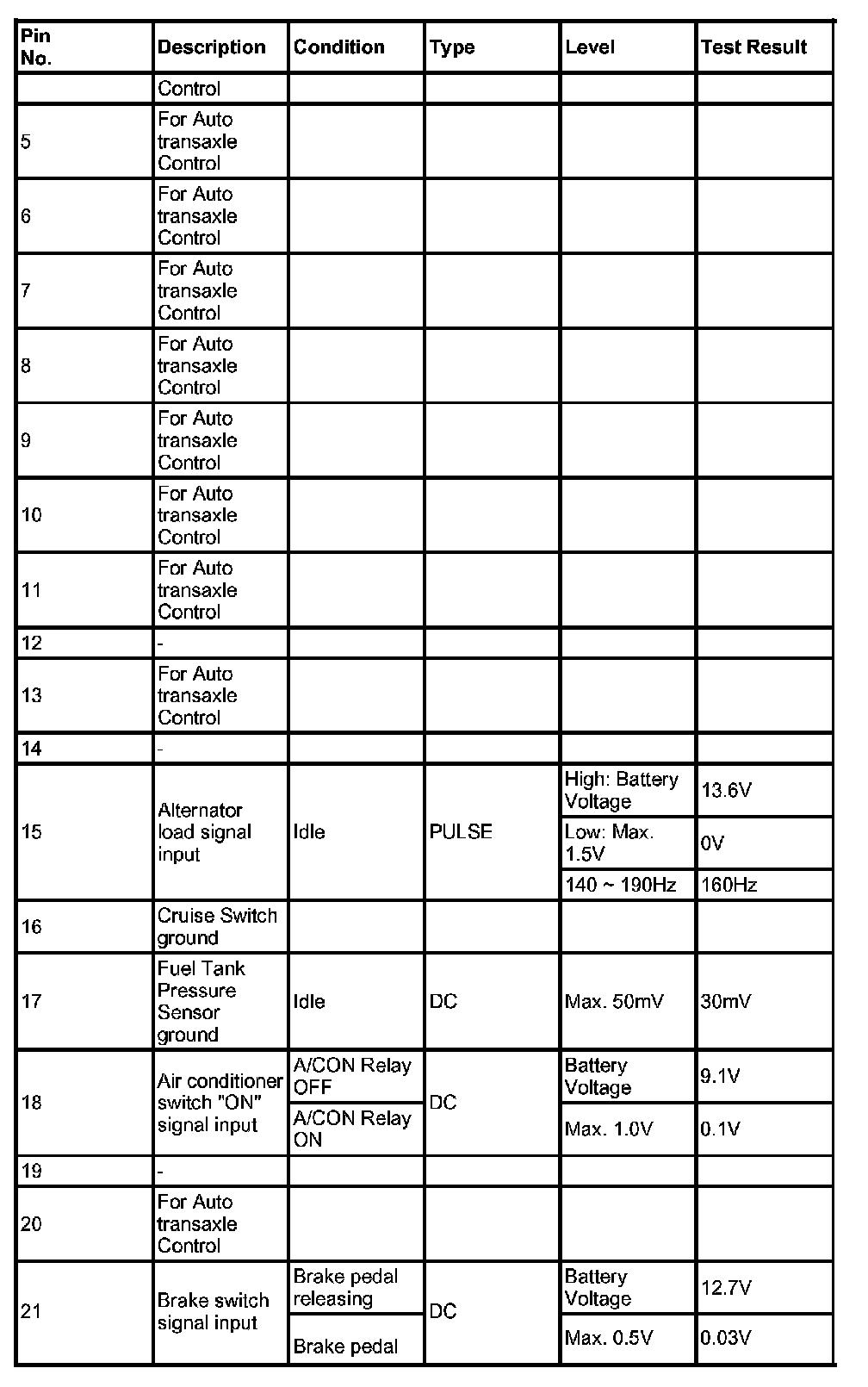 3. PCM TERMINAL INPUT/OUTPUT SIGNAL