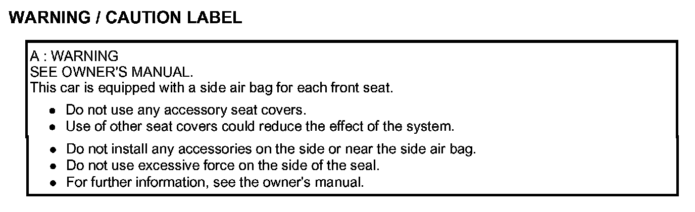Air Bag Warning / Caution Label Description