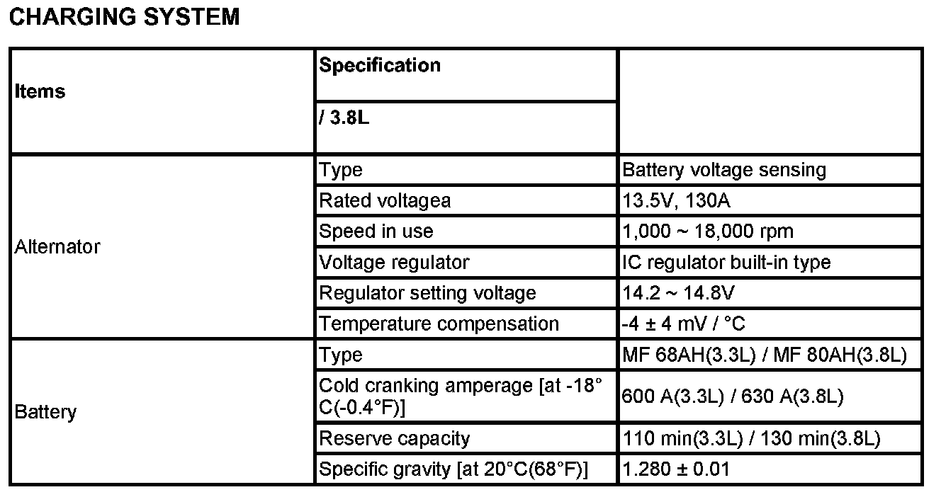 CHARGING SYSTEMCharging System - Specification: