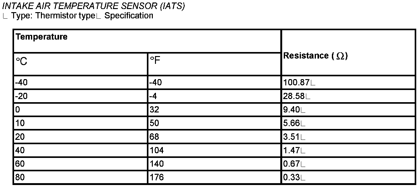 Intake Air Temperature Sensor(IATS) - Specification: