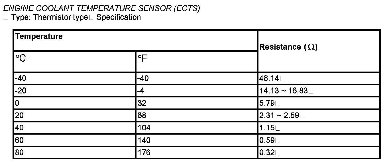Engine Coolent Temperature Sensor (ECTS) - Specification: