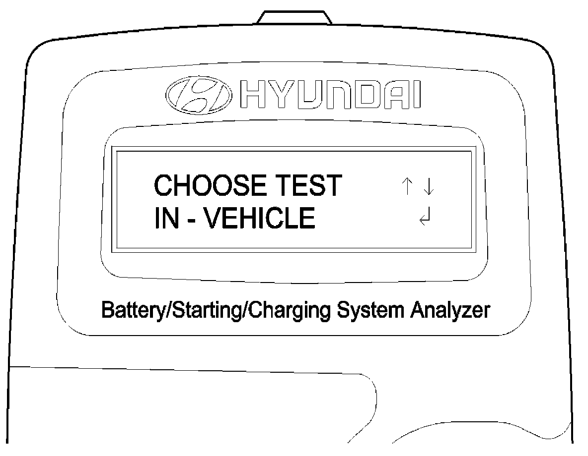 2. The tester will ask if the battery is connected "IN A VEHICLE" or "OUT OF A VEHICLE". Make your selection by pressing the arrow buttons; then press ENTER.