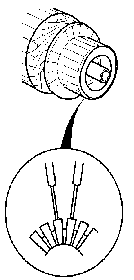 7. Check for continuity between the segments of the commutator. If an open circuit exists between any segments, replace the armature.