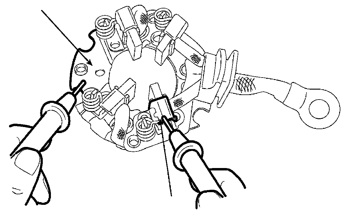 1. Check that there is no continuity between the (+) brush holder (A) and (-) brush holder (B). If there is no continuity, replace the brush holder assembly.