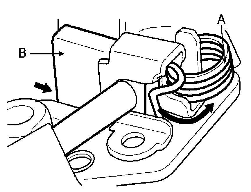 2. Pry back each brush spring (A) with a screwdriver, then position the brush (B) about halfway out of its holder, and release the spring to hold it there.