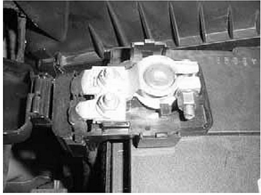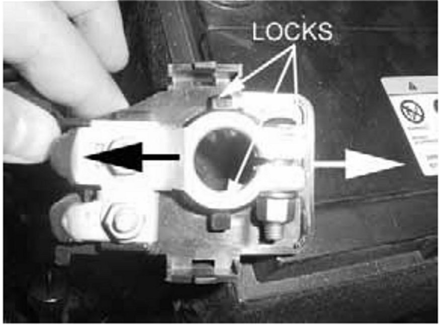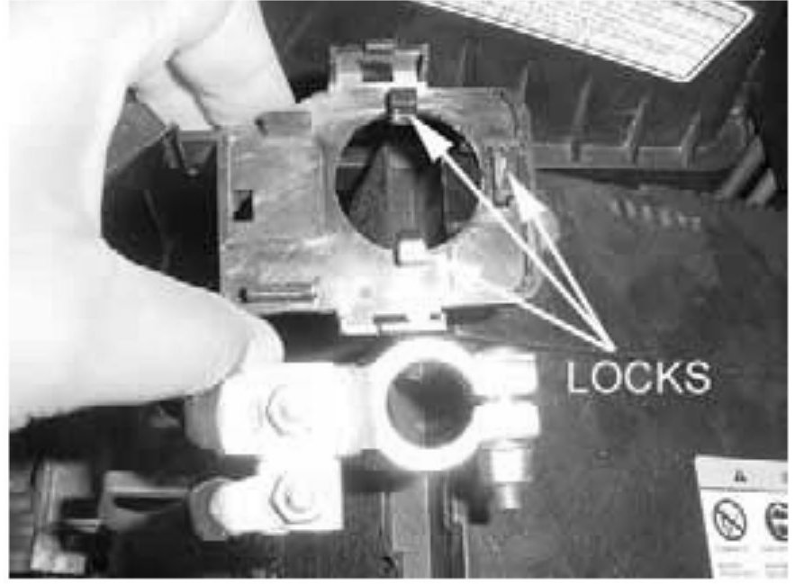 8. Re-attach the modified cover to the positive cable terminal as shown. Ensure that each of the three locks are properly engaged.