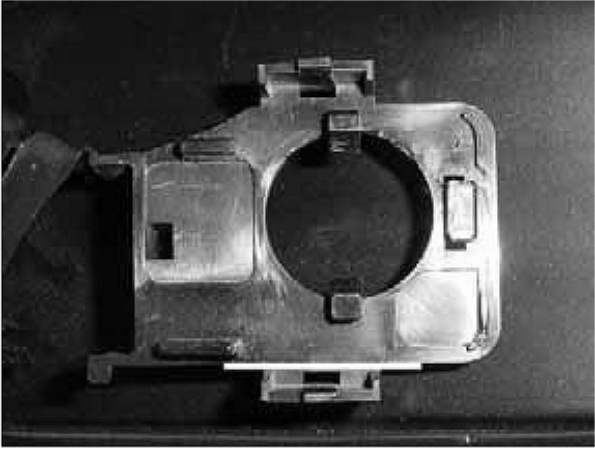 7. Using either a bench grinder or flush-cut side cutting pliers, remove the material (lower lock tab) shown below the line.