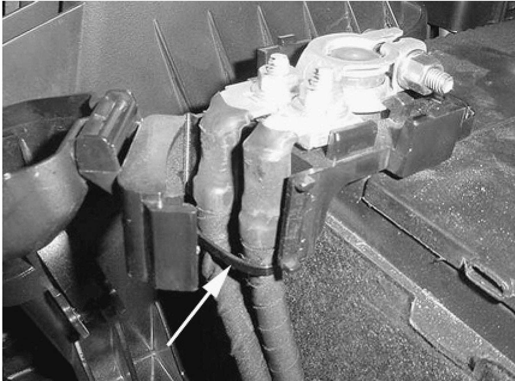 5. Remove and discard the wire-tie holding the positive battery cables to the cable stay.