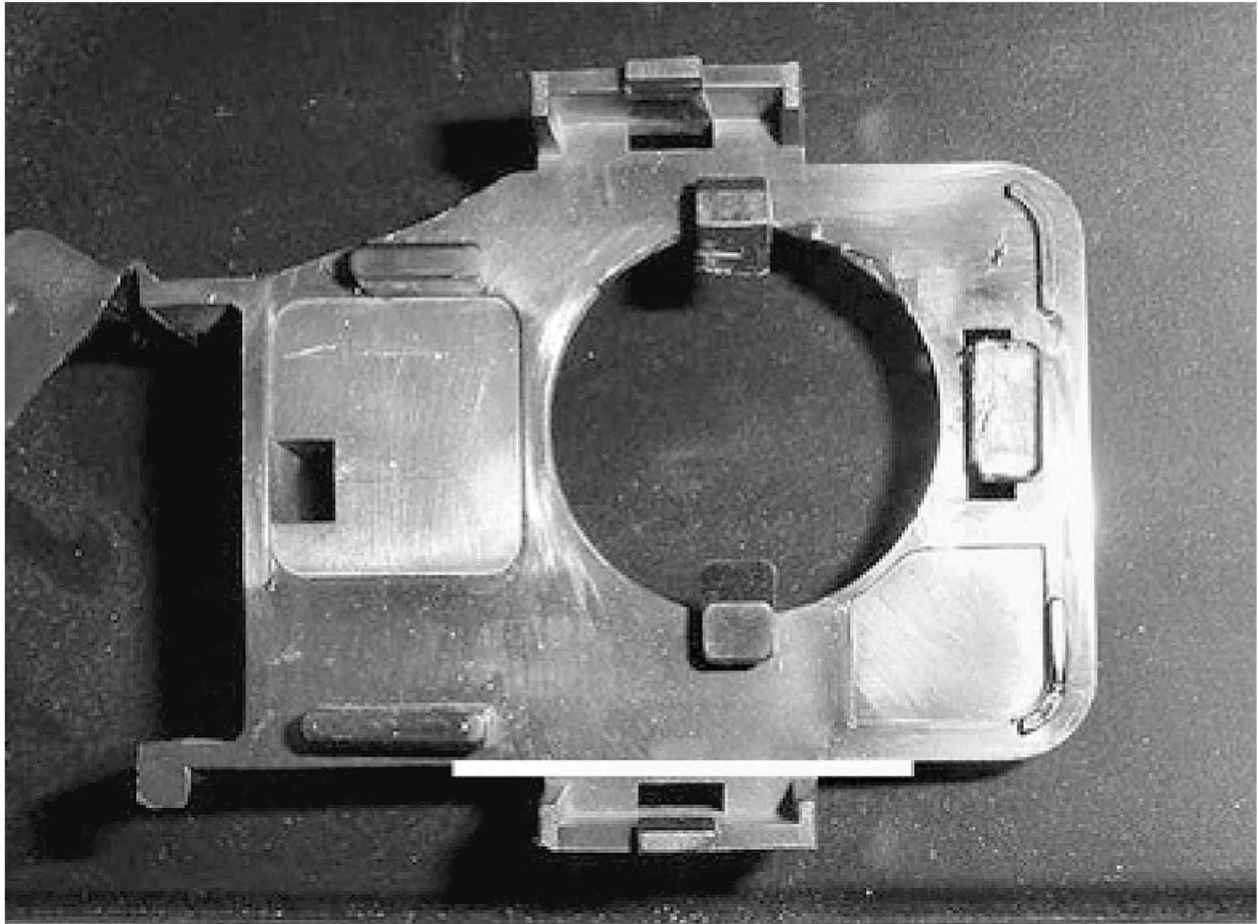 7. Using either a bench grinder or flush-cut side cutting pliers, remove the material (lower lock tab) shown below the line.