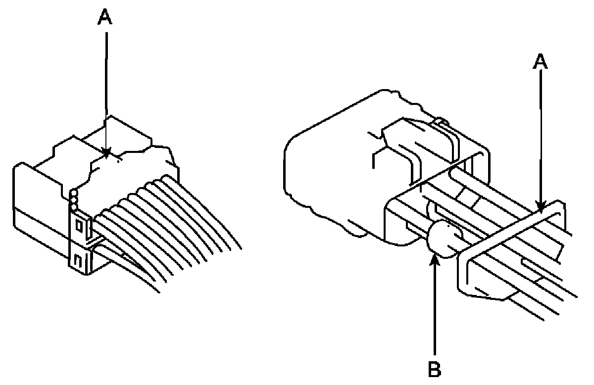 8. Before connecting connectors, make sure the terminals (A) are in place and not bent.