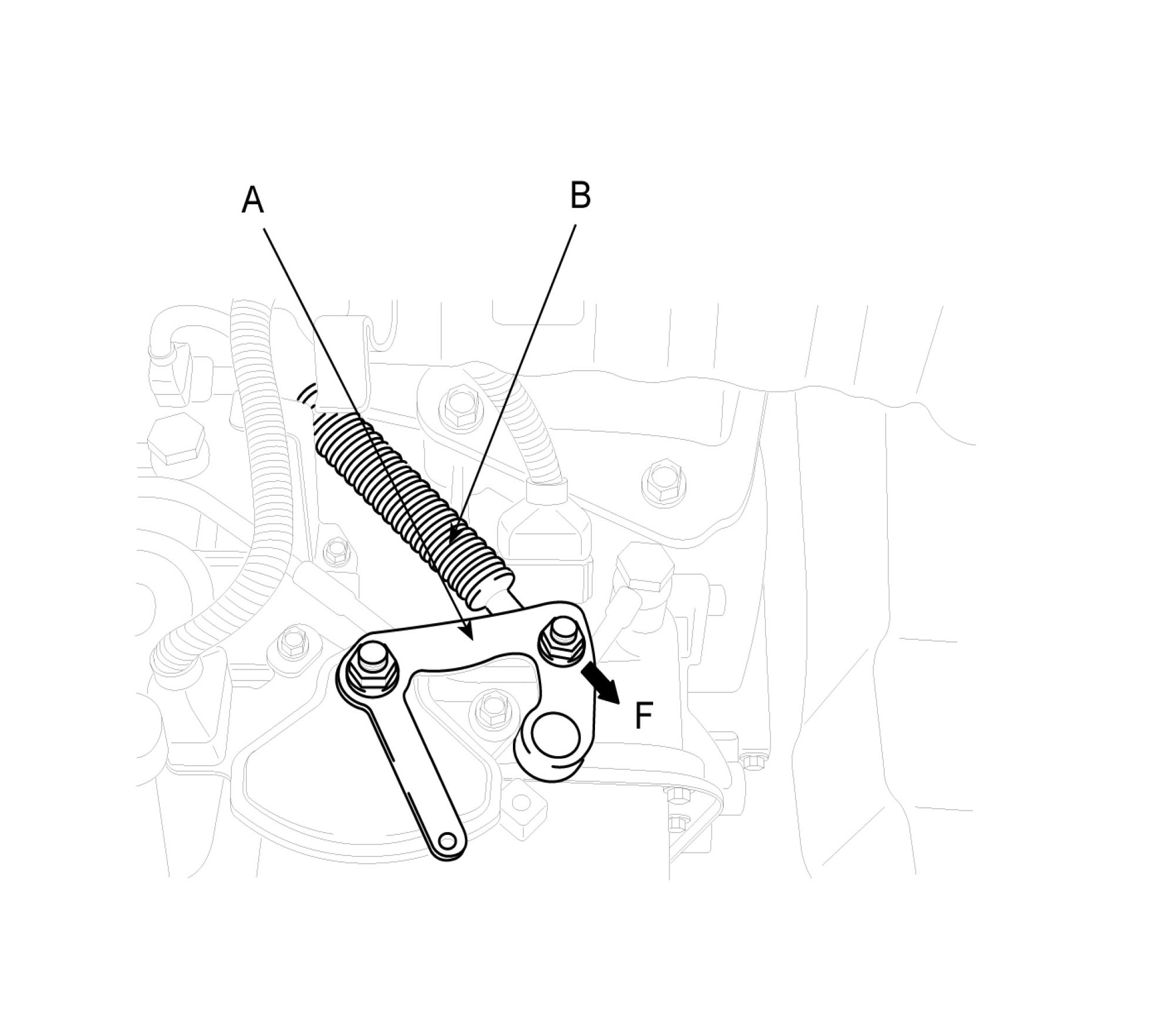 1. Push cable (B) lightly to "F" direction shown to eliminate FREE PLAY of cable.