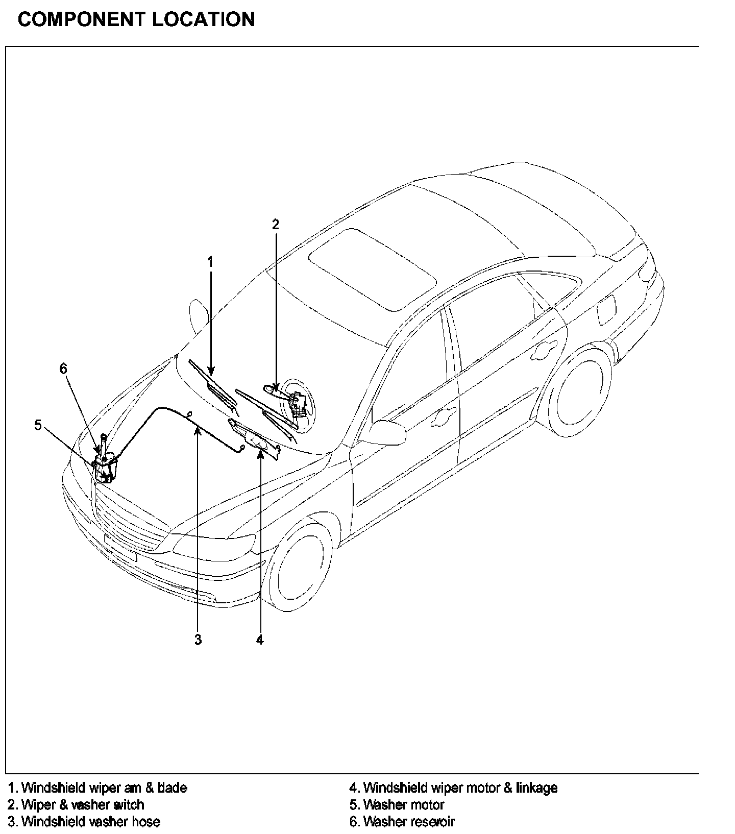 Winshield Wiper Washer Component Location:
