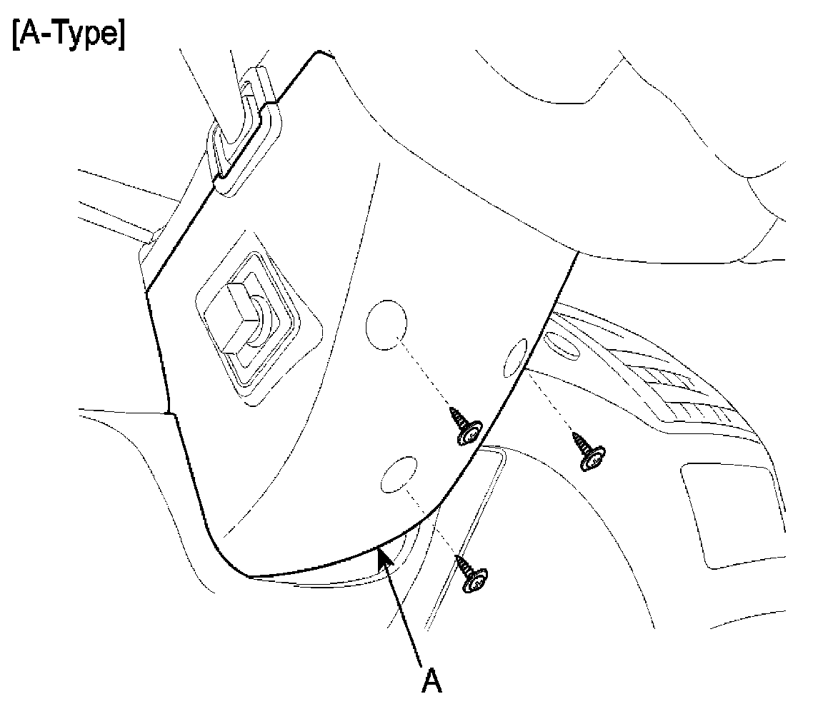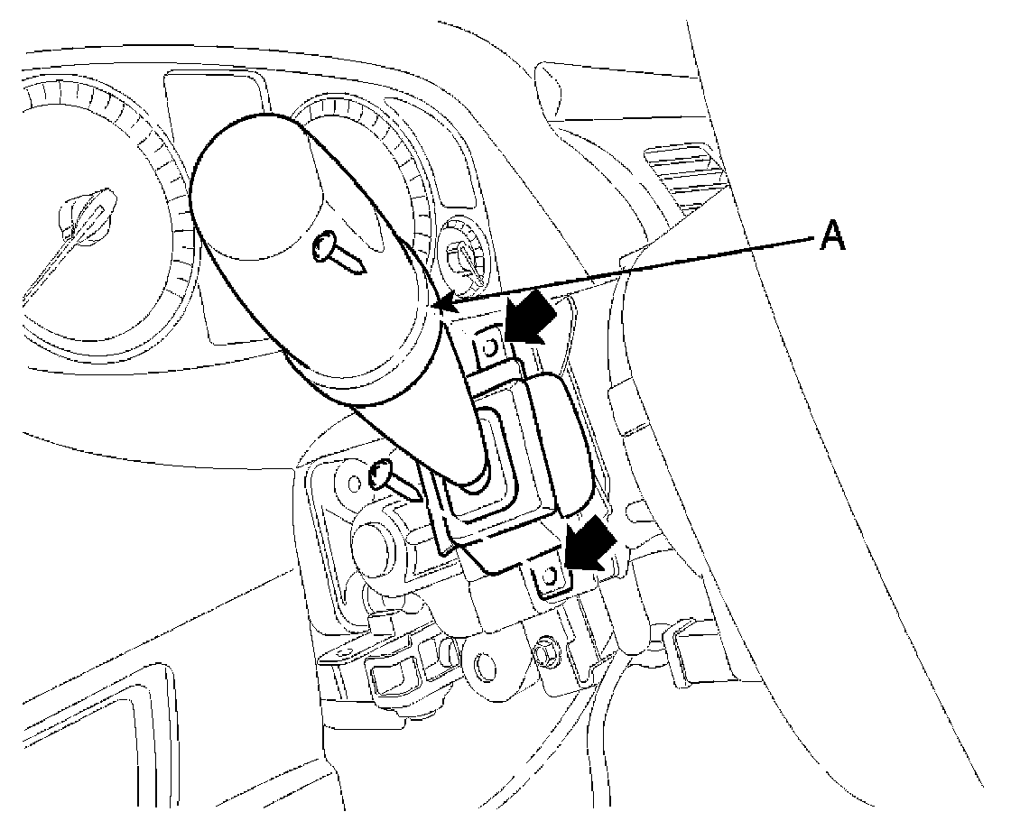 2. Remove the steering column upper and lower shrouds (A) after removing 3 screws.
