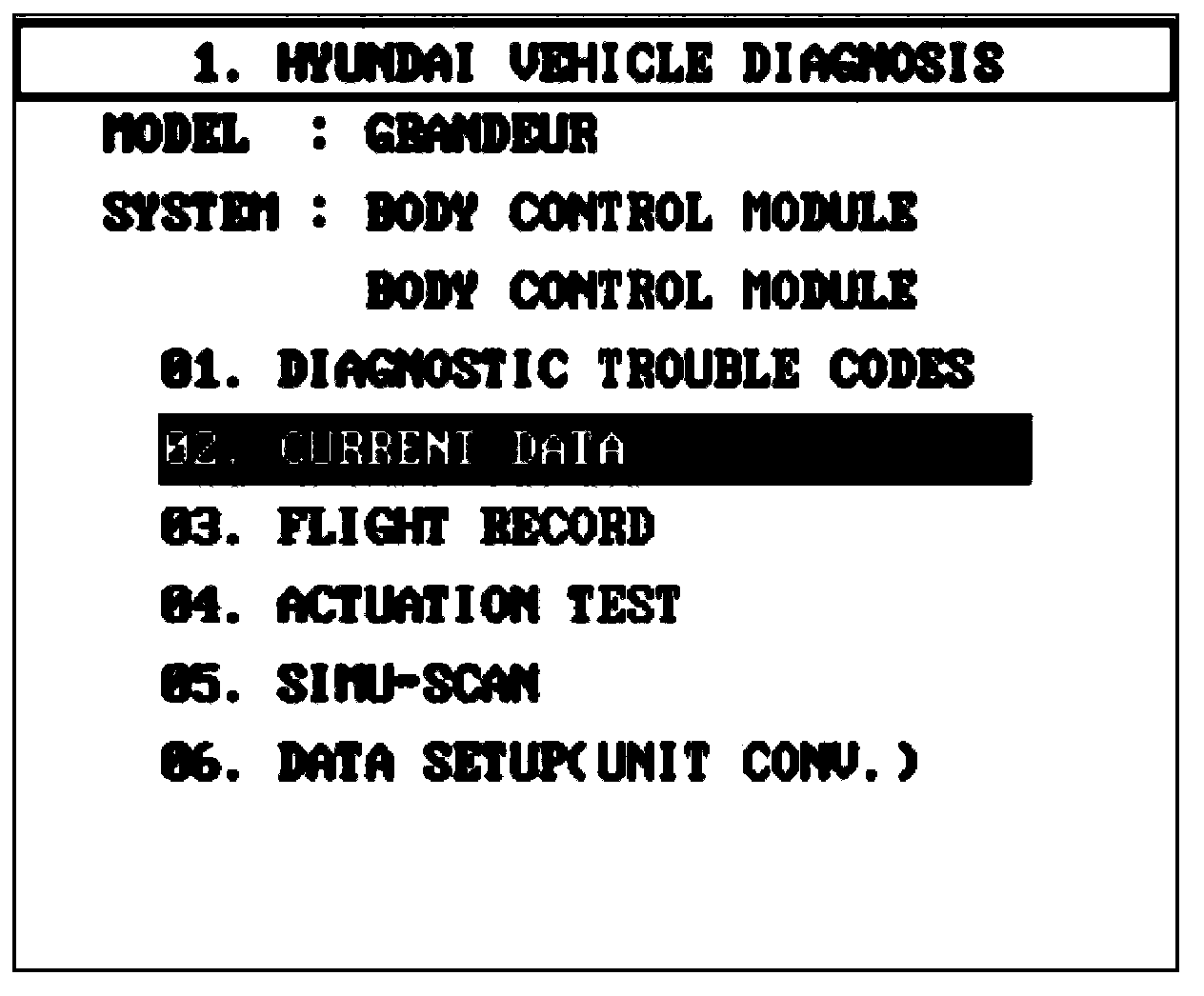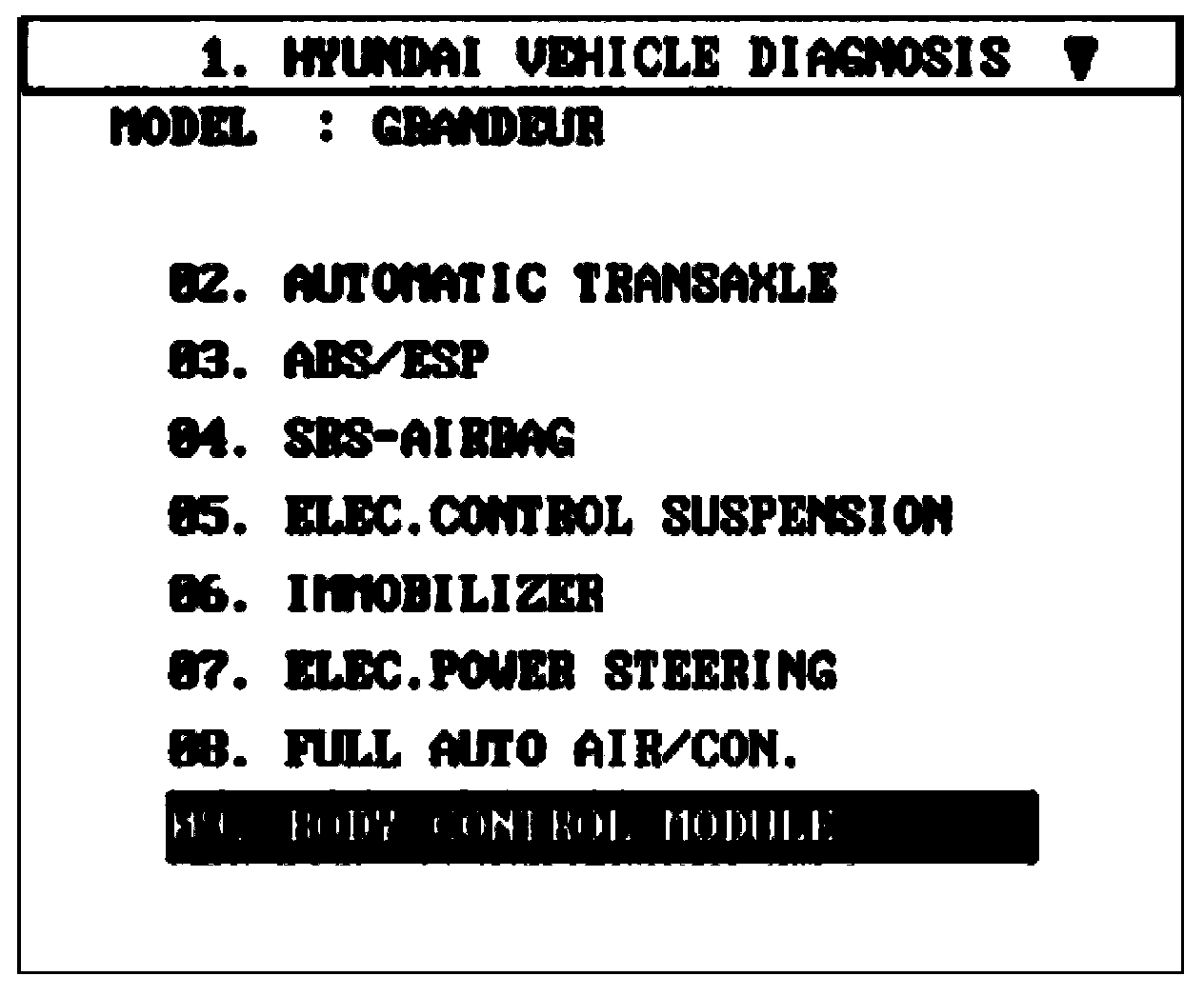 Select model and BCM menu.