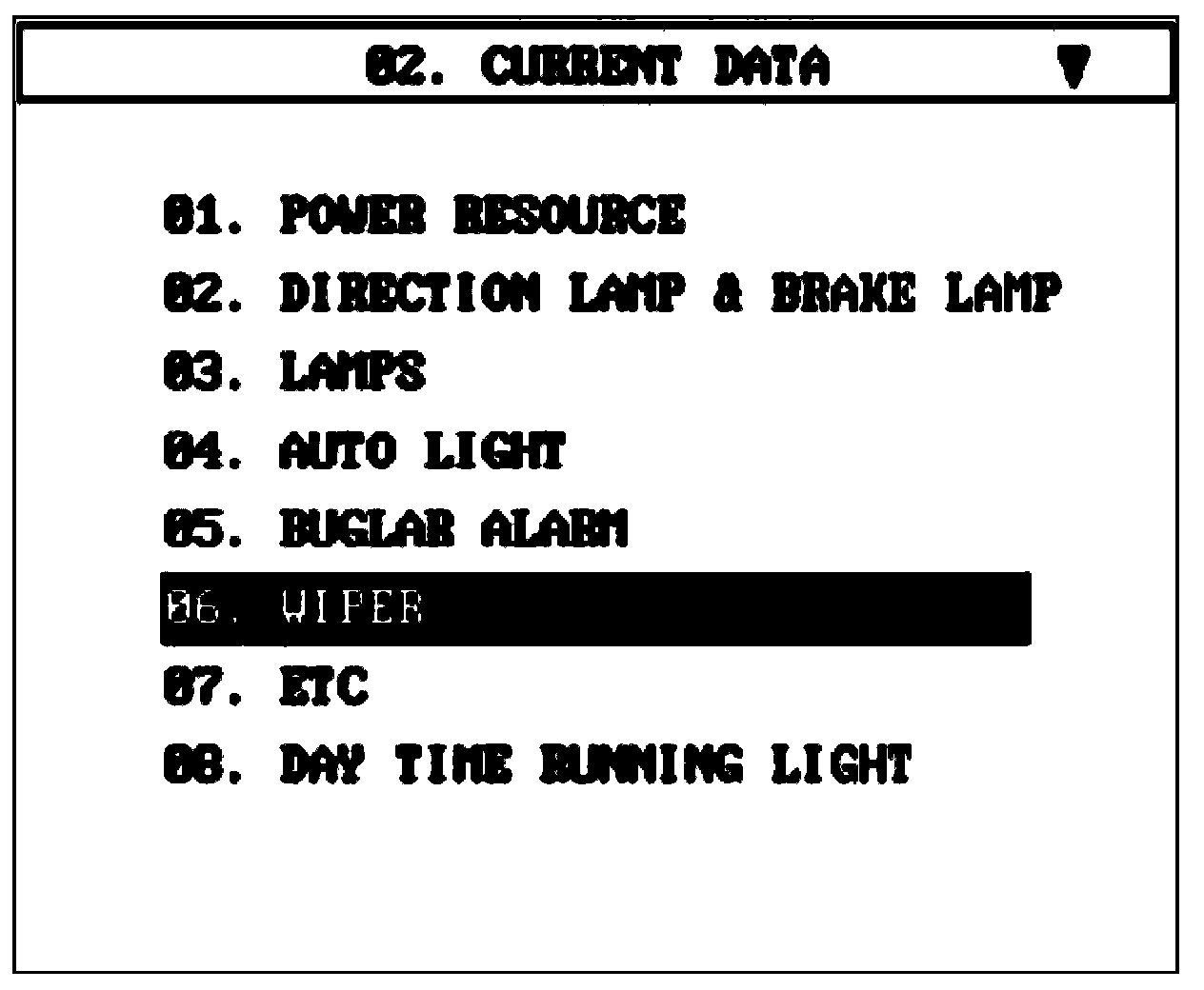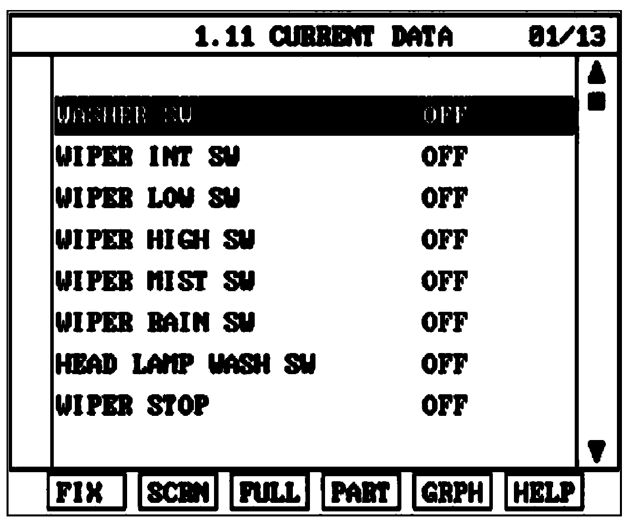 Select "Current data" and wiper.