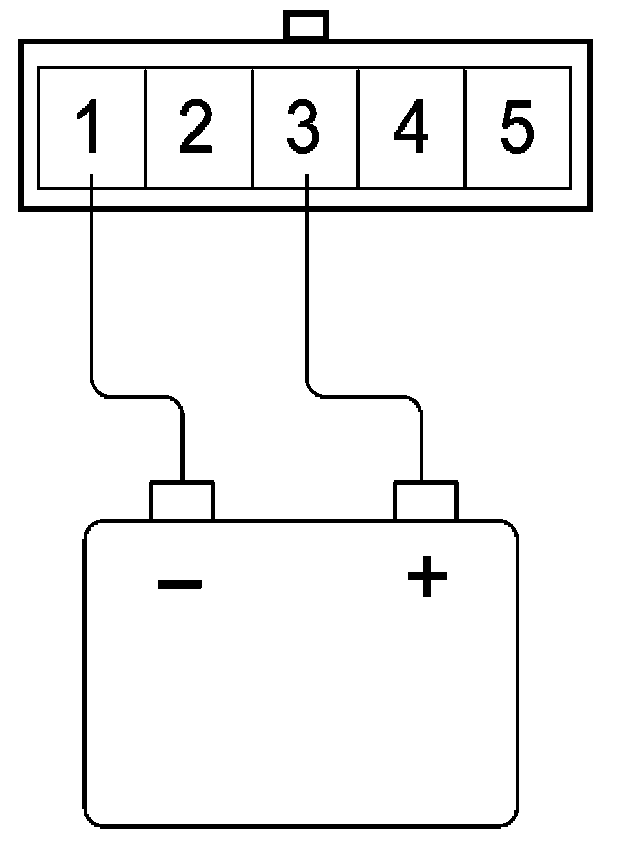 4. Connect the positive (+) lead from the battery to terminal 5 and the negative (-) lead to terminal 1.