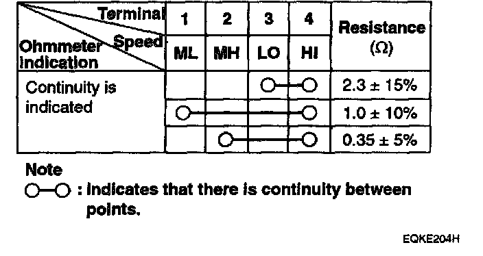 If measured resistance is not within specification, the blower resistor must be replaced. (After removing the resistor)