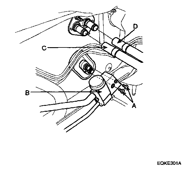 5. Disconnect the inlet (C) and outlet (D) heater hoses from the heater unit.