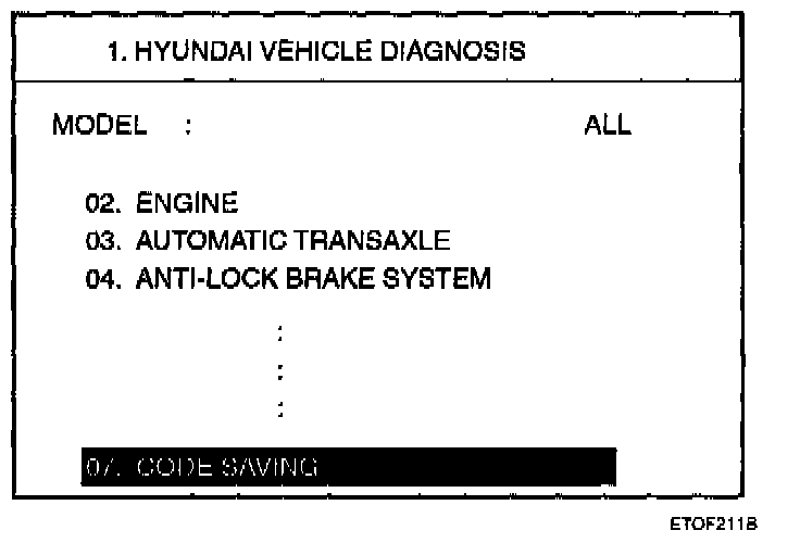 Transmitter Code Registration1. Connect the DLC cable of hi-scan to the data link connector (16 pins) in driver side crash pad lower panel, turn the power on hi-scan.