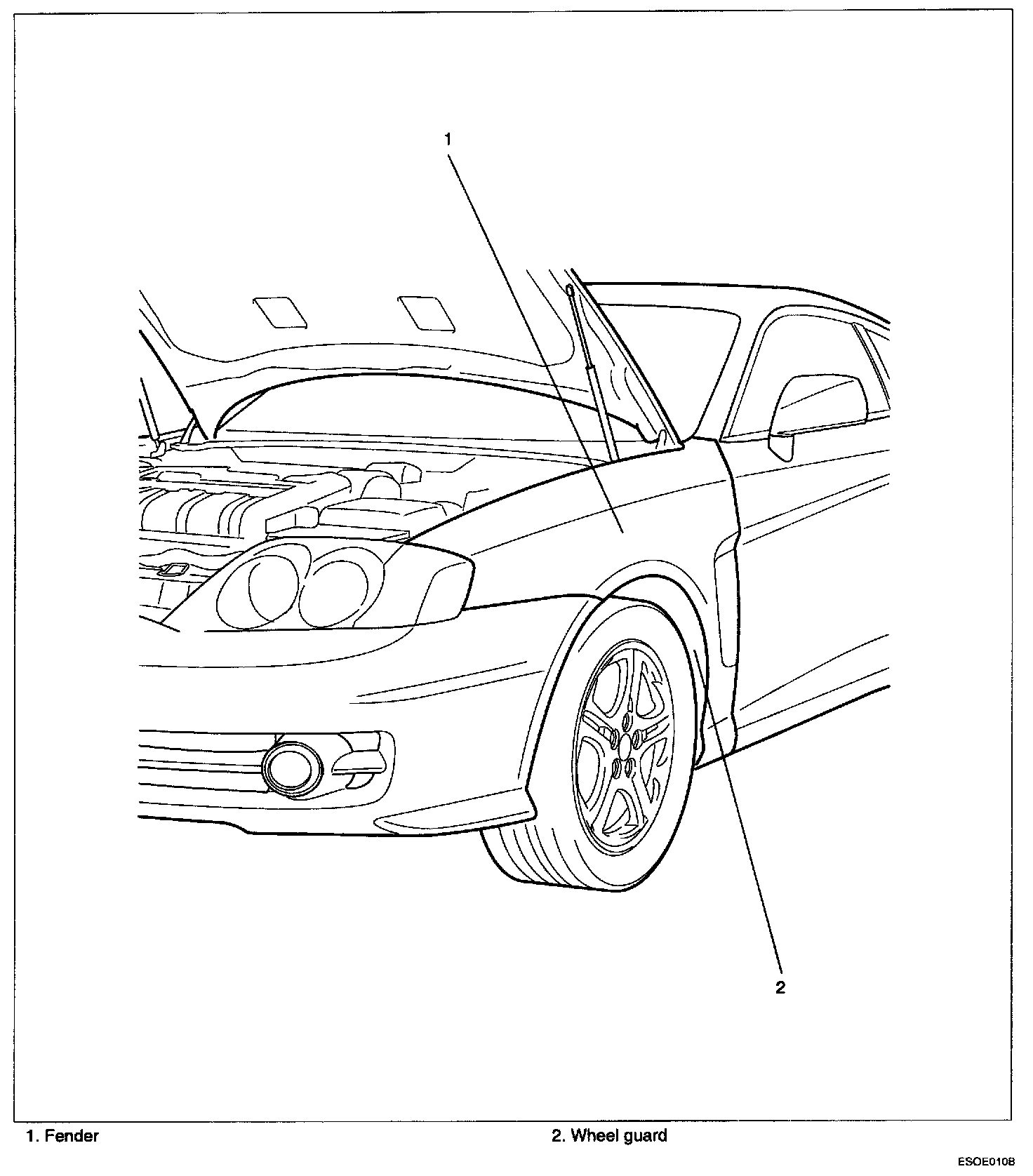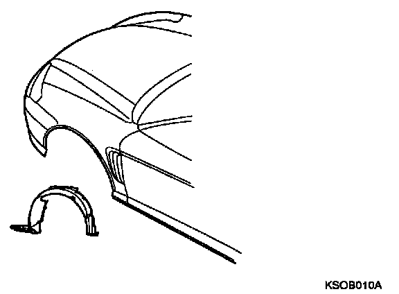 NOTE: In order to prevent the lender mounting bolt area from torming rust, apply tape sealer between the fender and the body panel.