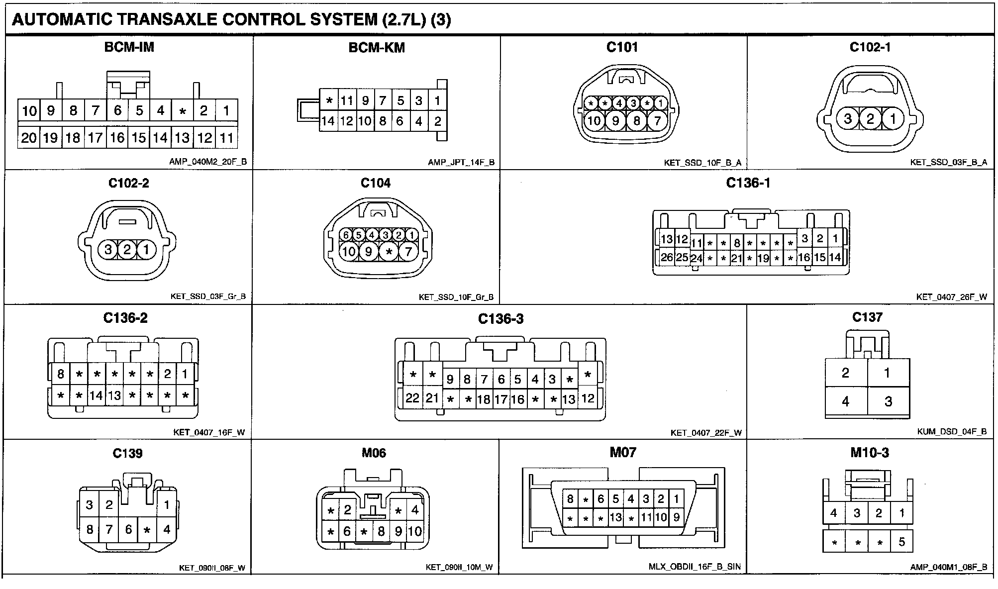 Automatic Transaxle Control System Connector Pin Outs: