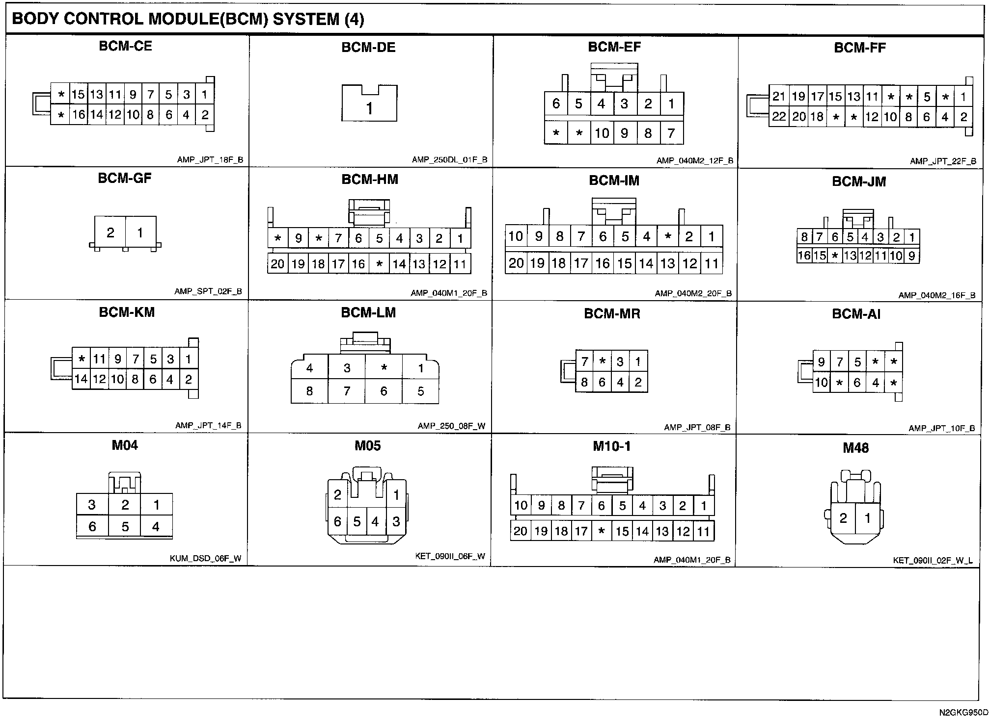 Body Control Module (BCM) System Connector Pin Outs: