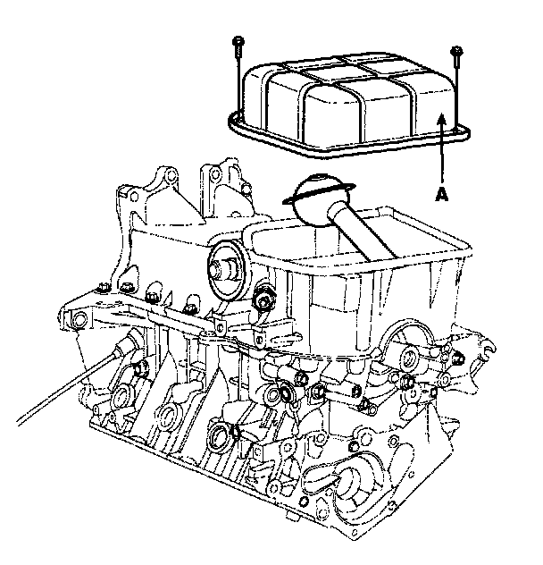 2) Install the oil pan (A) with the 17 bolts. Uniformly tighten the bolts in several passes.
