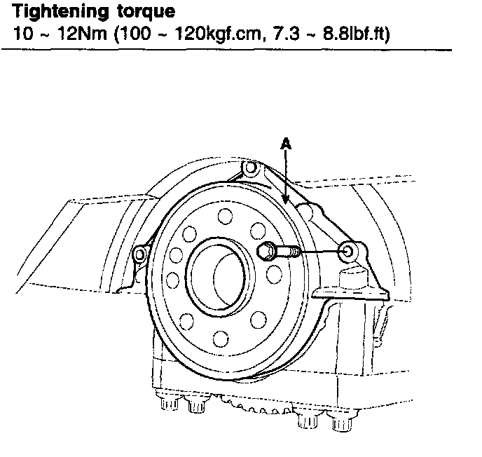 Tightening torque 12 - 15 Nm (120 - 150 kgf-cm, 9 - 11 ft. lbs.)