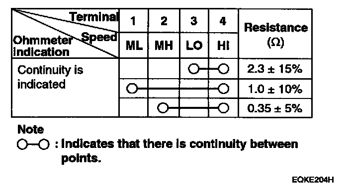 If measured resistance is not within specification, the blower resistor must be replaced. (After removing the resistor)