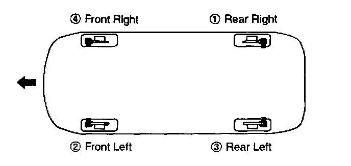 4. Repeat the procedure for each wheel in the sequence shown below until air bubbles no longer appear in the fluid.
