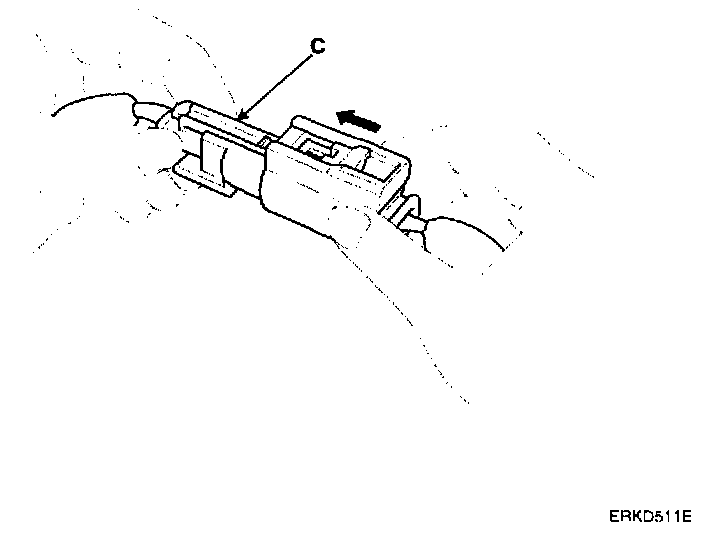 Hold both connector halves and press firmly until the projection (C) of the sleeve-side connector clicks to lock.