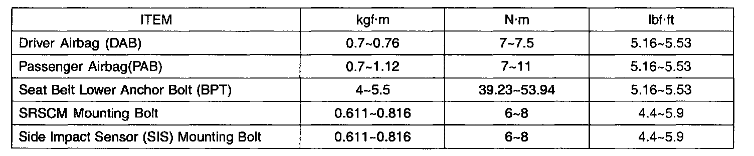 Tightening Torques: