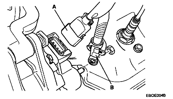 3. Disconnect the connector(A) and "B" terminal cable(B).
