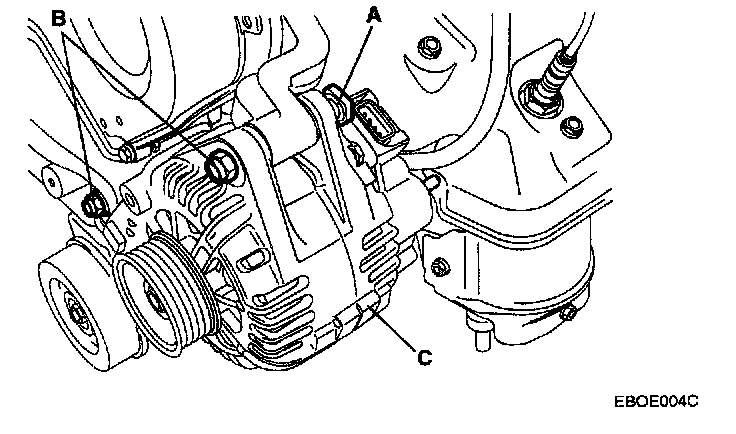 - Place the alternator and insert a support bolt (Do not insert a nut this time).