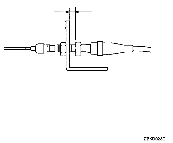 5. Turn the adjusting nut (A) until it is 3.75 ± 0.5 mm (0.15 ± 0.02 in.) away from the bracket (B).