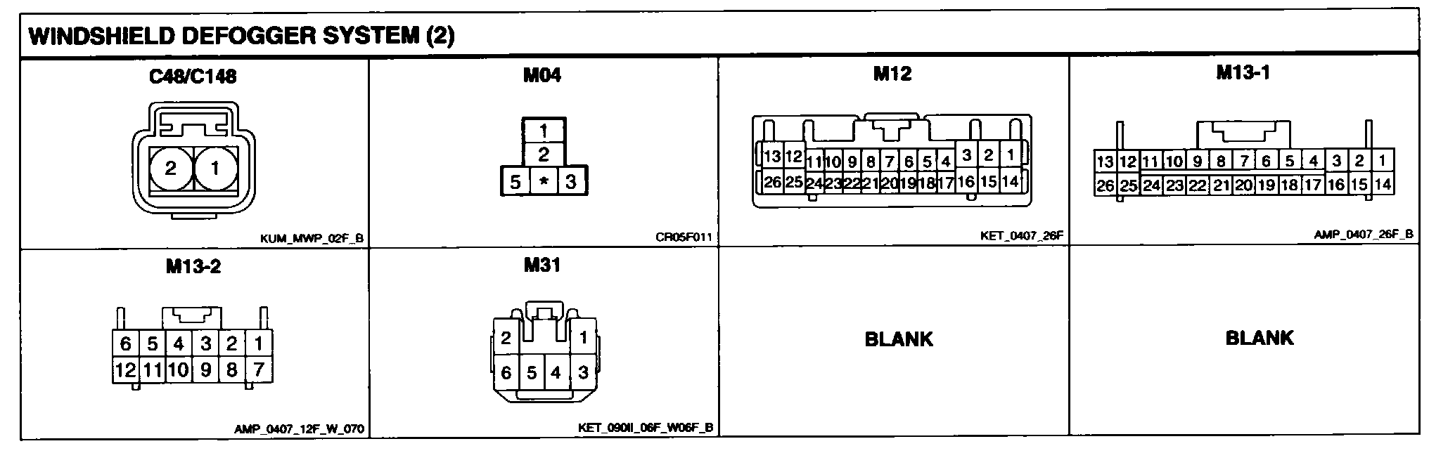 Windshield Defogger System Connector Pin Outs:
